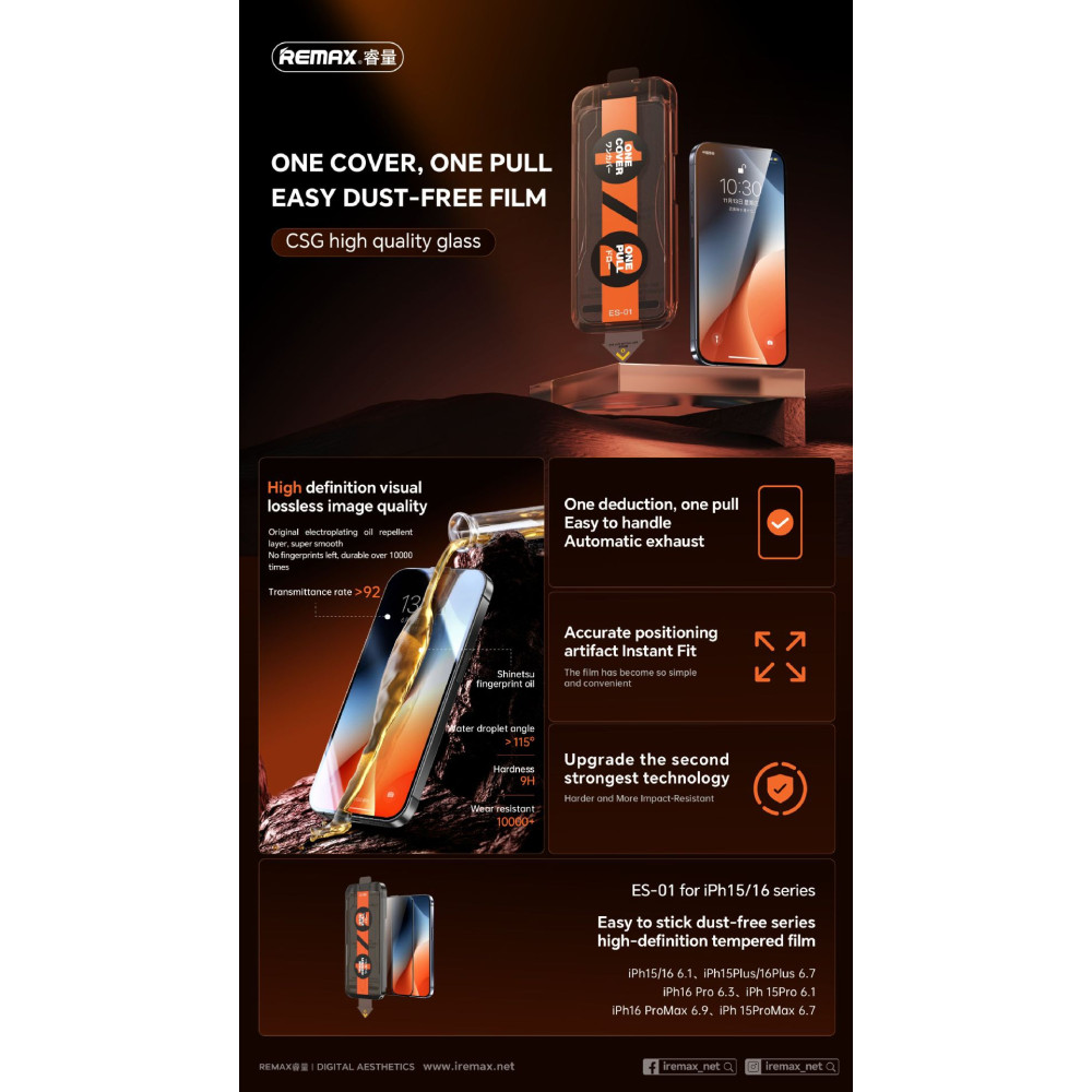 Захисне скло Remax ES-01 Easy to stick dust-free high-definition iPhone 16 Pro Max