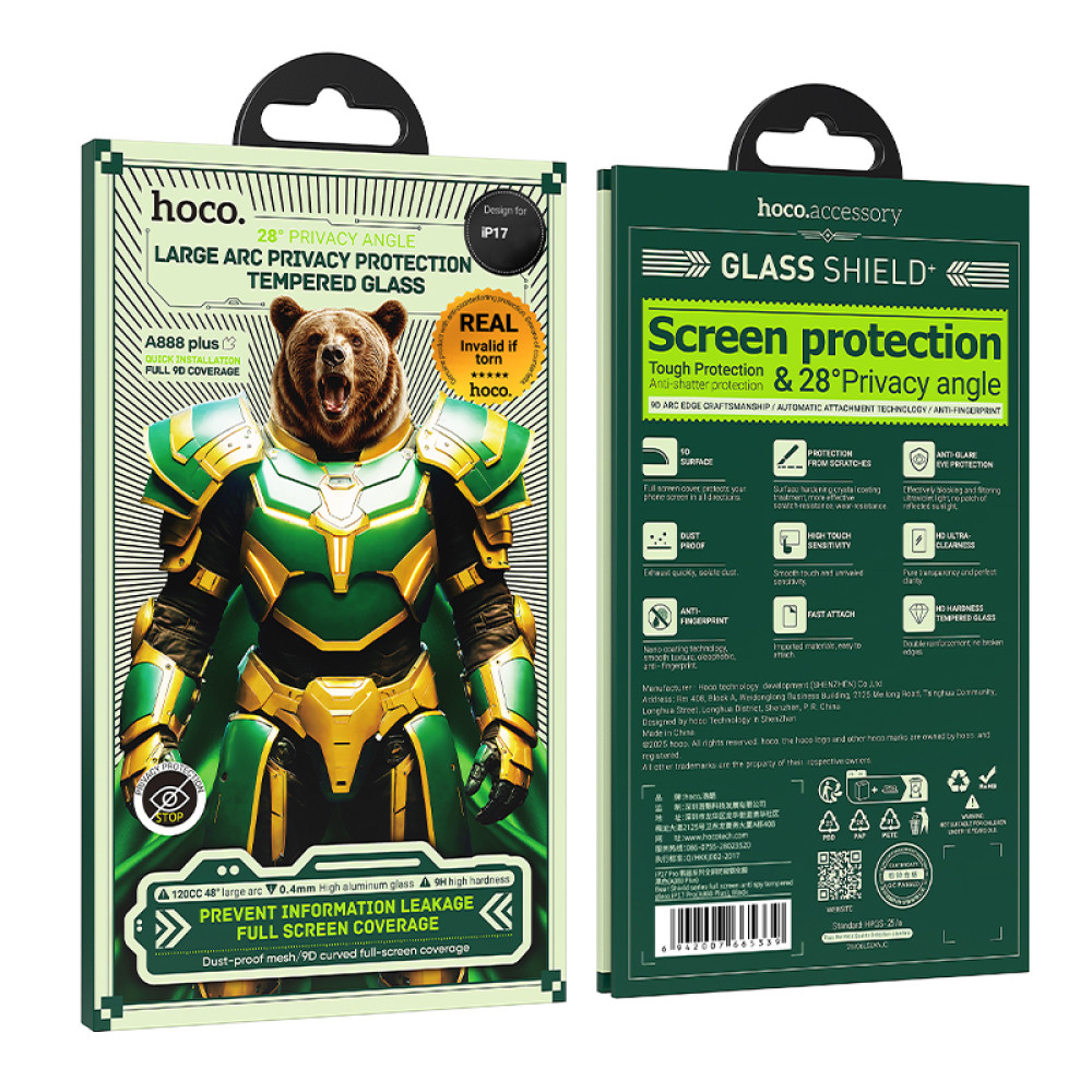 Захисне скло Hoco Bear Shield series full screen anti spy tempered glass iPhone 16 Pro-iPhone 17 (A888 Plus)