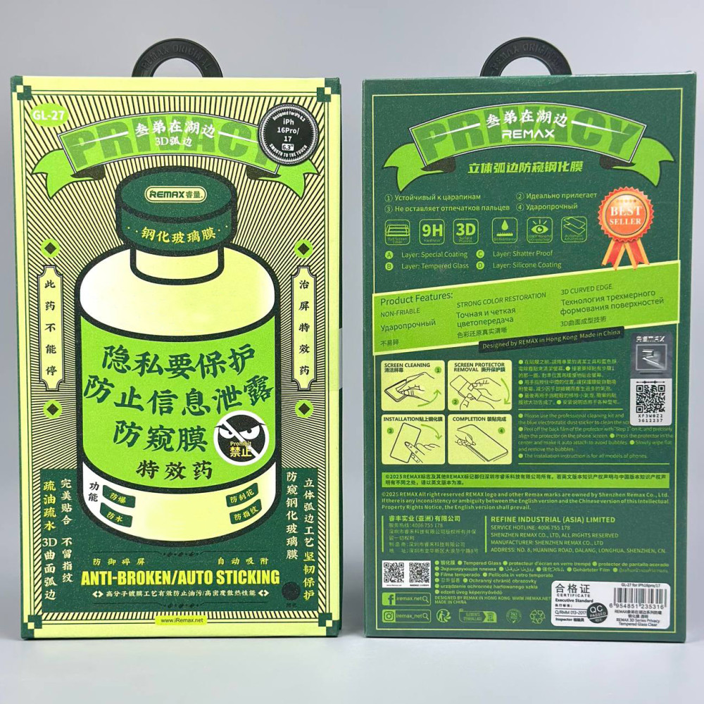 Захисне скло Remax GL-27 Privacy Tempered Glass Screen iPhone 17