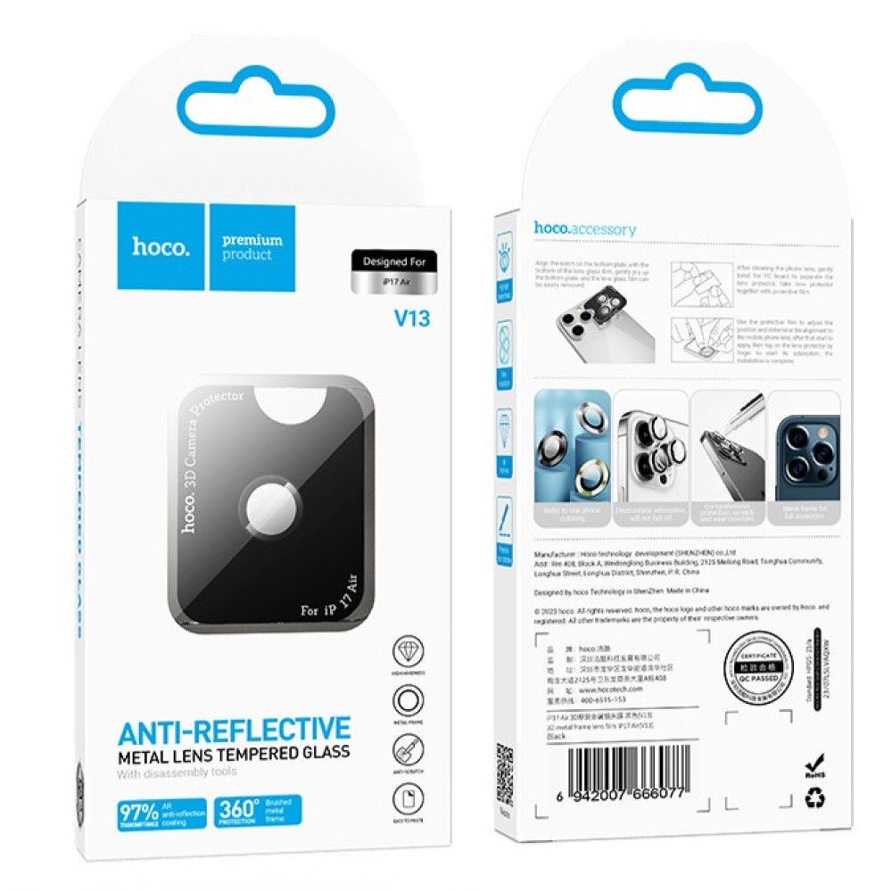 Захисне скло на камеру Hoco 3D metal frame lens film iPhone 17 Air (V13) (1шт)