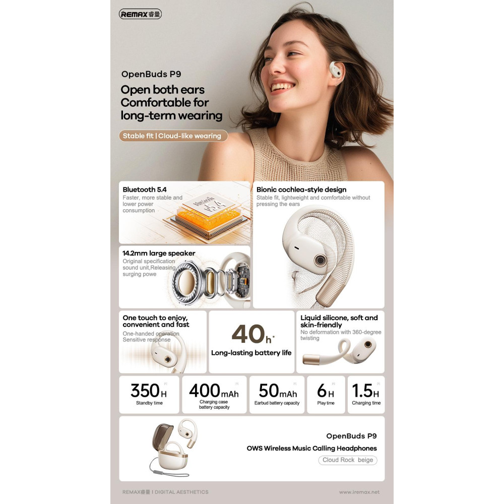 Бездротові навушники Remax P9 OWS Wireless Stereo (Гарантія на перевірку 6 міс.)