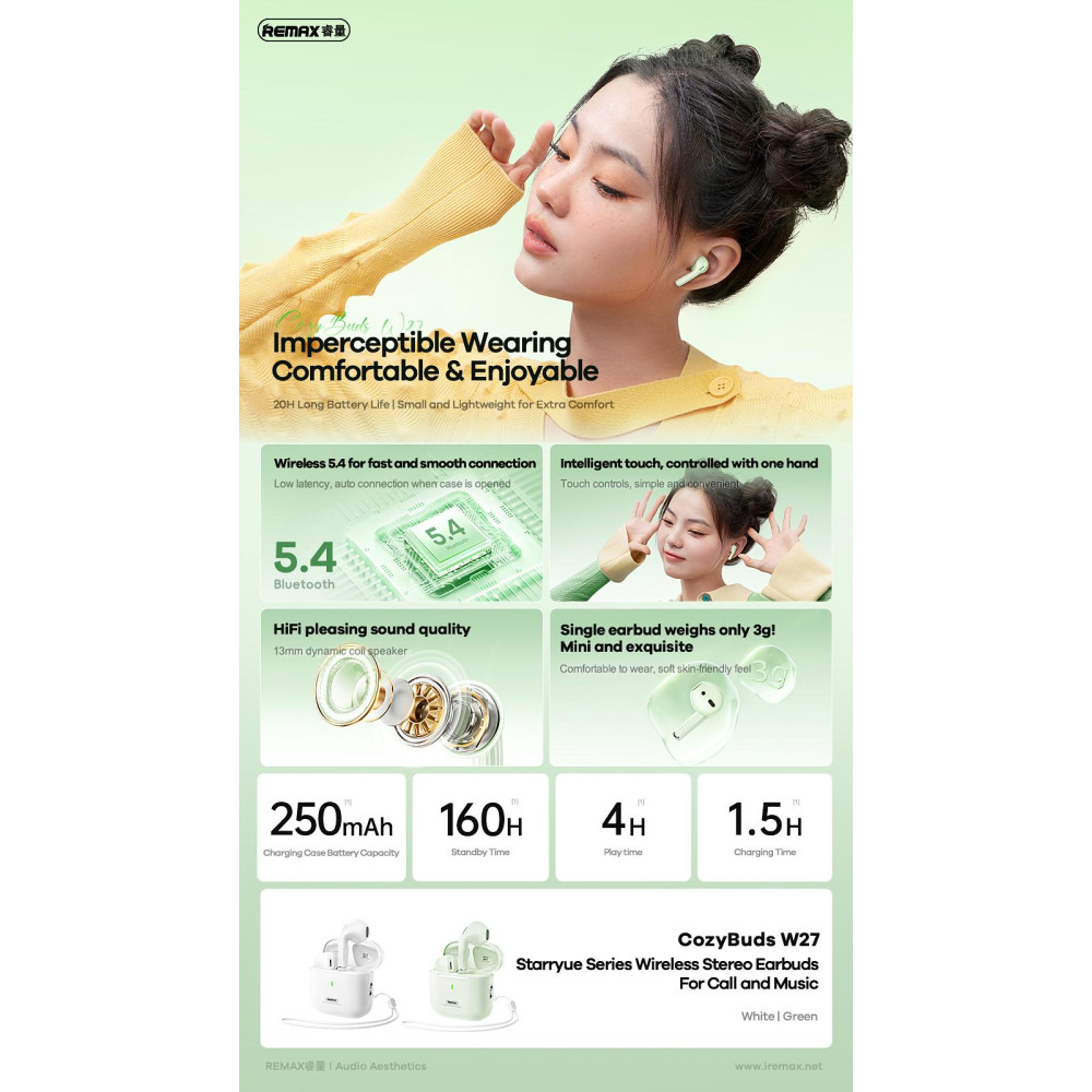 Бездротові навушники Remax W27 Starryue Series Stereo CozyBuds (Гарантія на перевірку 6 міс.)