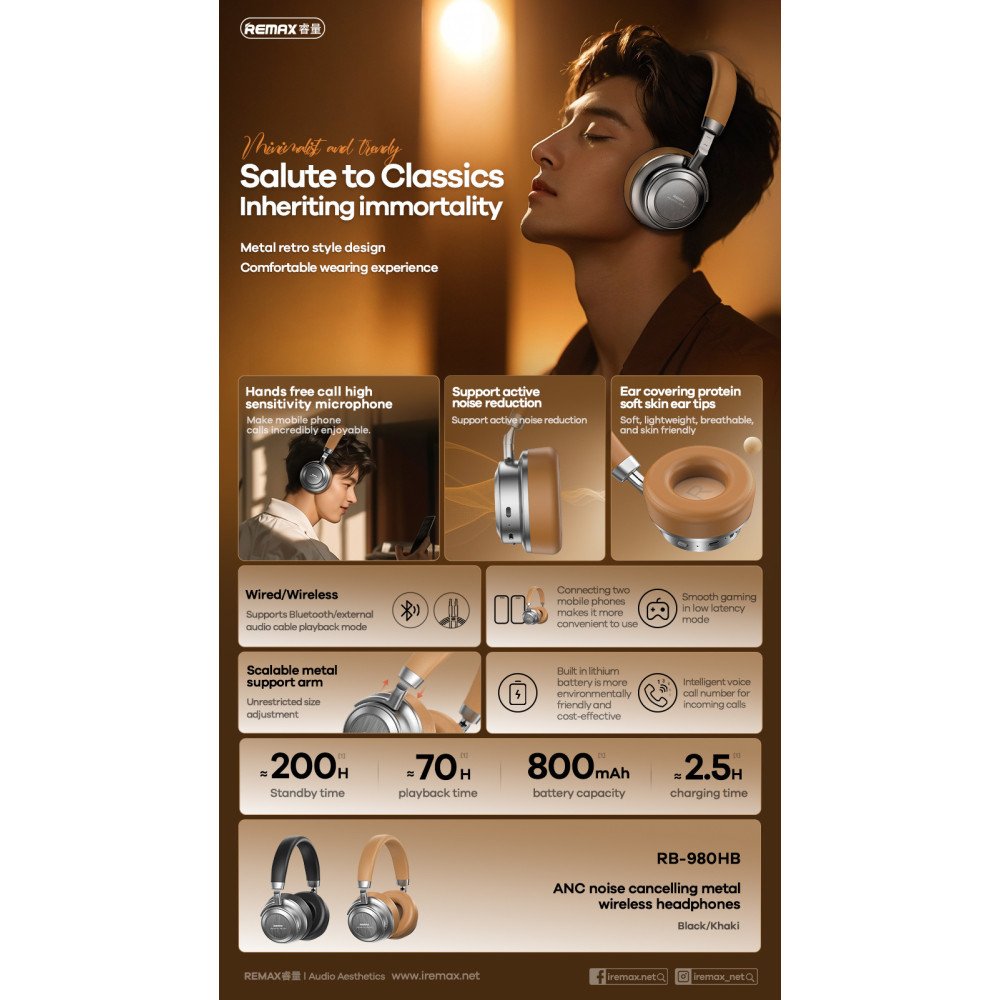 Навушники Remax RB-980HB ANC (Гарантія на перевірку 6 міс.)