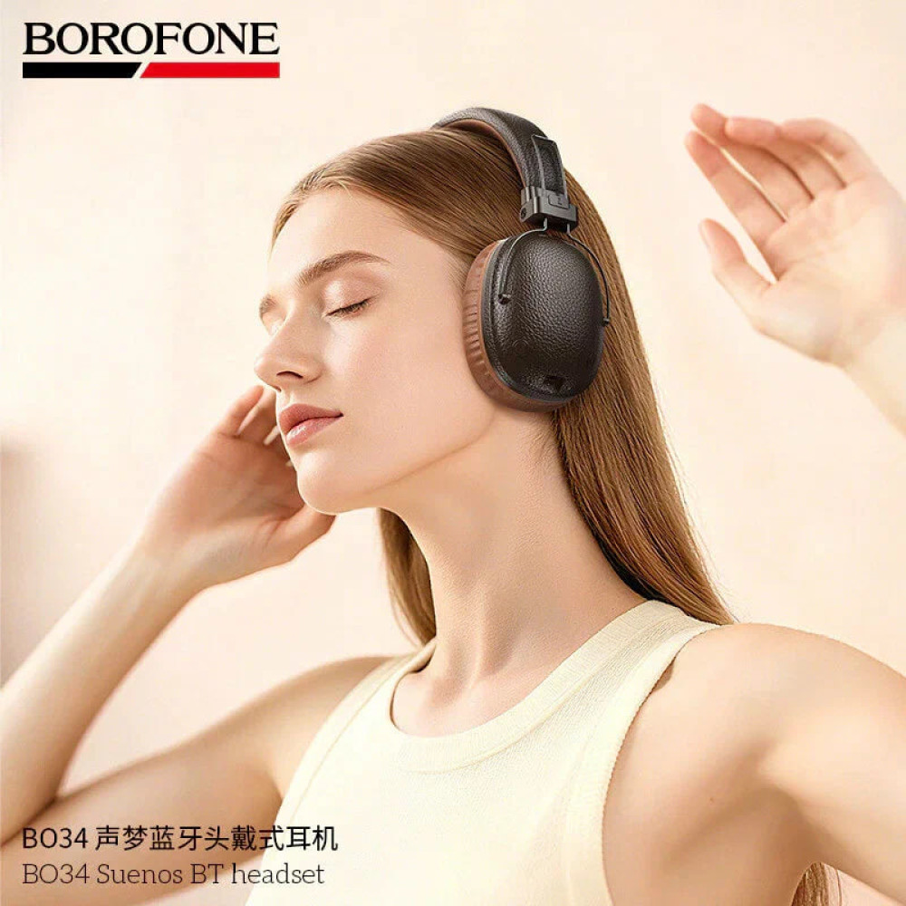 BOROFONE BO34 Suenos — це комфортні навушники з Bluetooth 5.4 та потужними динаміками, що забезпечують глибоке звучання з чіткими басами і високими частотами. Вони прекрасно підходять для прослуховування музики, перегляду відео та розмов у дзвінках. Ергономічна конструкція забезпечує легкість та комфорт навіть при тривалому використанні.