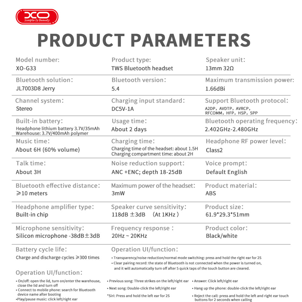 Бездротові навушники XO G33 Sporadic Dual-Mic ANC+ENC (Гарантія на перевірку 6 міс.)