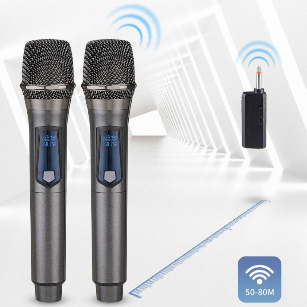 2 професійні бездротові динамічні мікрофони, здатні працювати одночасно.