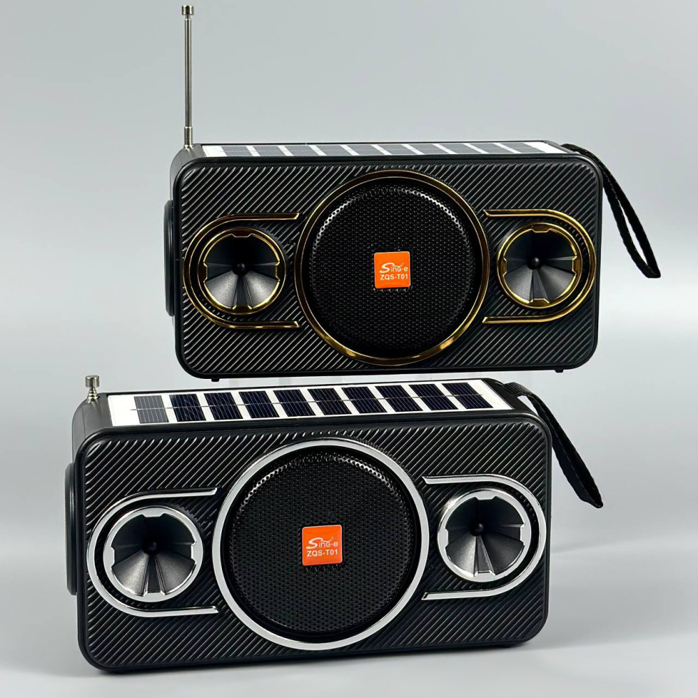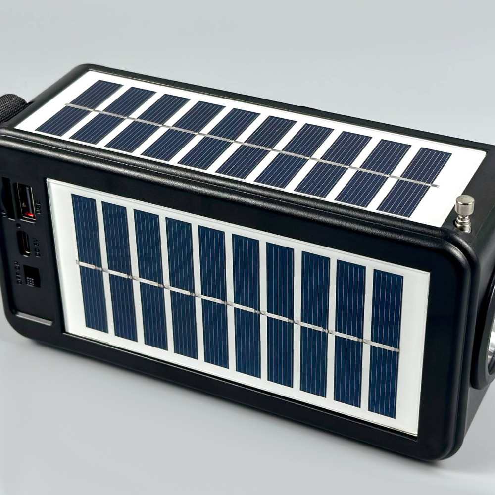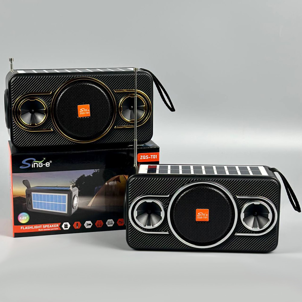 Колонка-радіо Sing-e ZQS-T01 із сонячною панеллю+ліхтар 8W, 1200mAh (16,8*9,5*6,2 см) (Гарантія на перевірку 3 міс.)