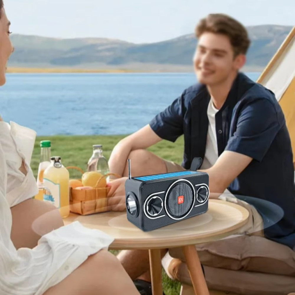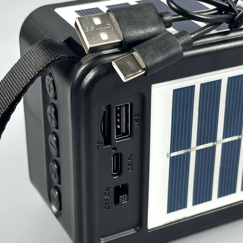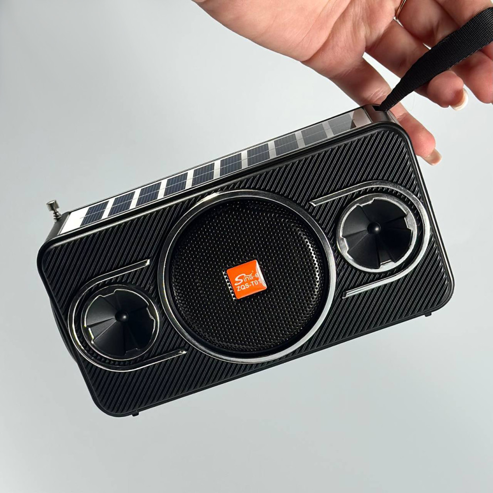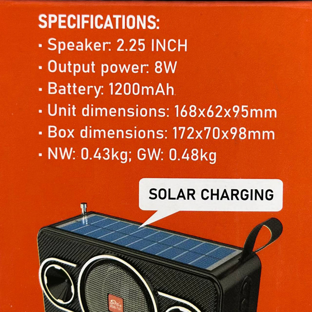 Колонка-радіо Sing-e ZQS-T01 із сонячною панеллю+ліхтар 8W, 1200mAh (16,8*9,5*6,2 см) (Гарантія на перевірку 3 міс.)