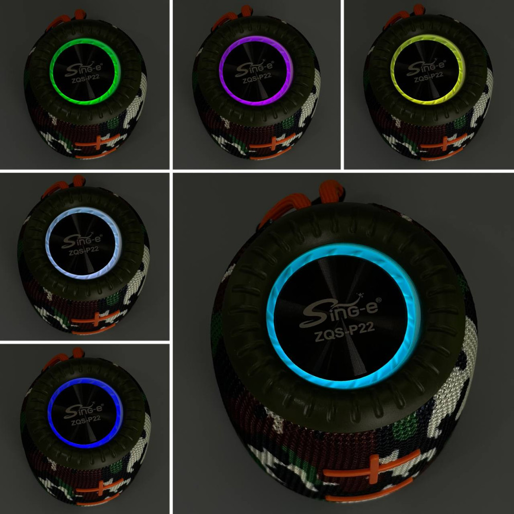 Колонка Sing-e ZQS P22 IPX3 RGB 8W, 1200mAh (11,2*9,0*9,0 см) (Гарантія на перевірку 3 міс.)