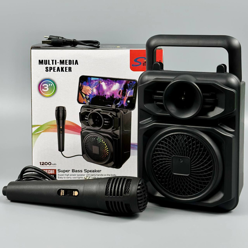 Колонка Sing-e ZQS1361 Mini RGB з мікрофоном 8W, 1200mAh (16,5*11,5*9,0 см) (Гарантія на перевірку 3 міс.)