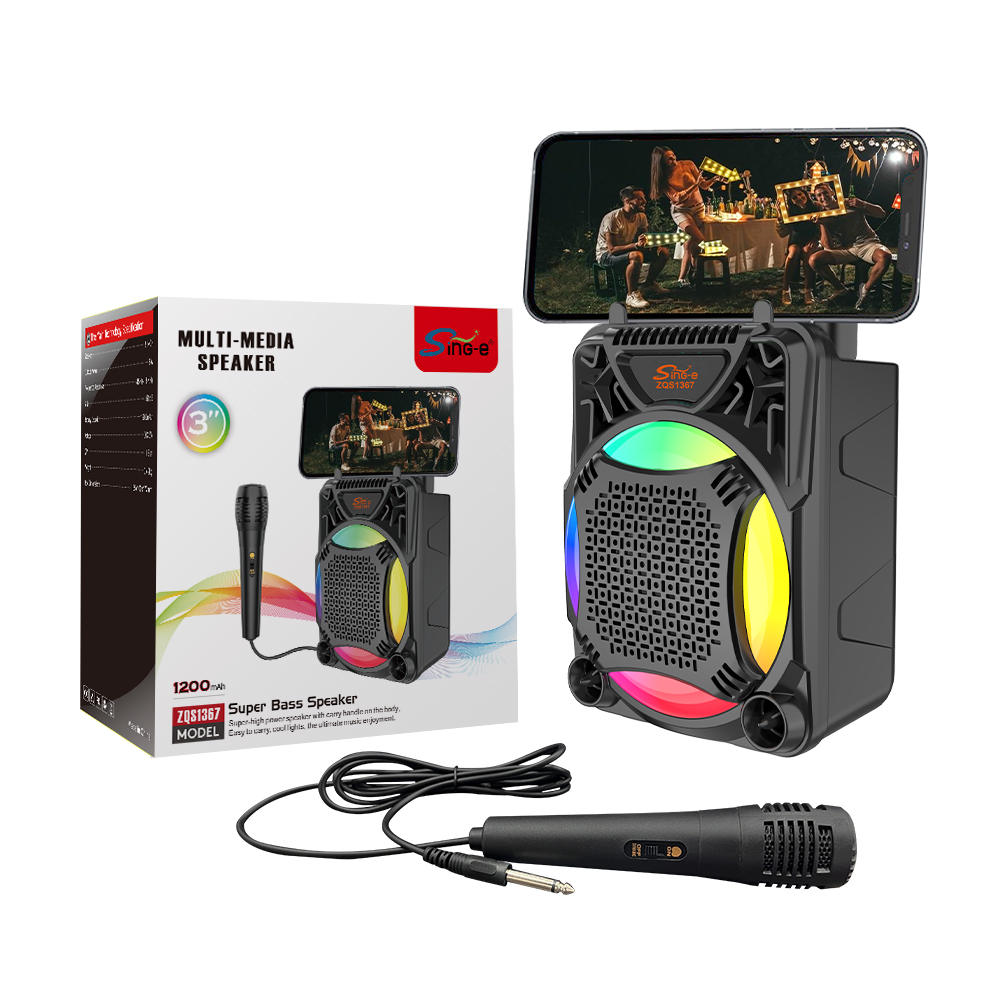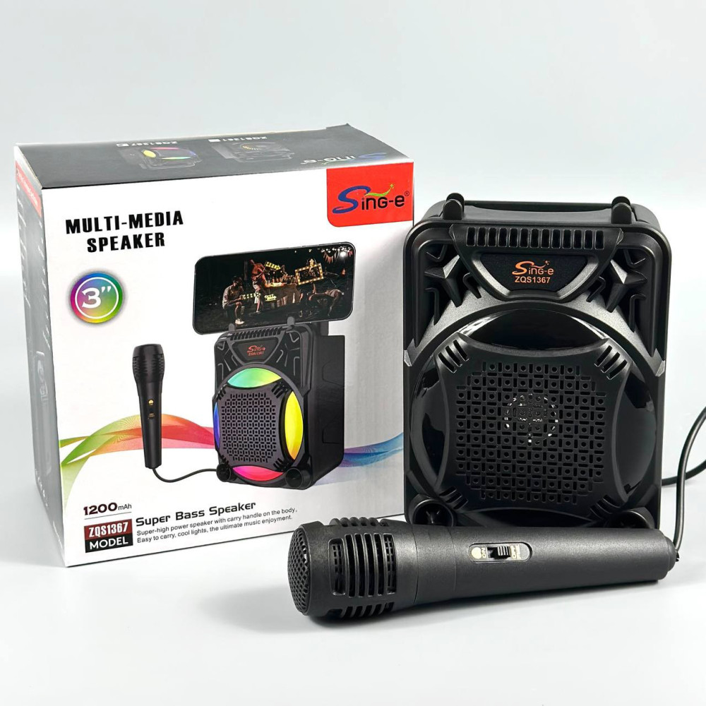 Колонка Sing-e ZQS1367 Mini RGB з мікрофоном 8W, 1200mAh (17,0*16,0*9,5 см) (Гарантія на перевірку 3 міс.)