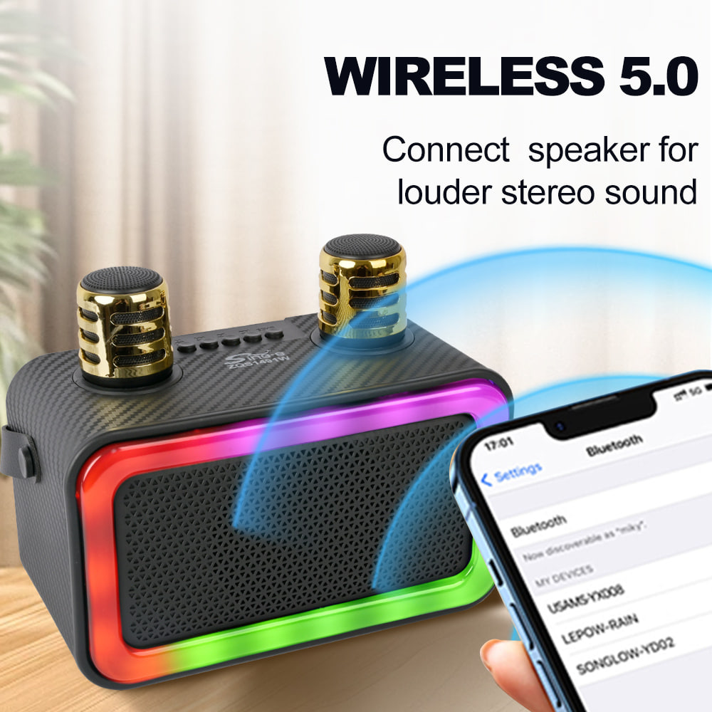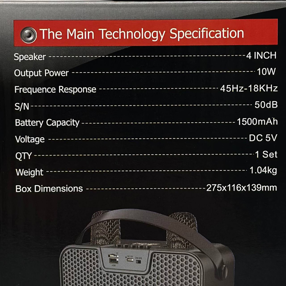 Колонка Sing-e ZQS1491W Mini RGB 10W, 1500mAh з 2ма мікрофонами (23,3*13,2*11,2 см) (Гарантія на перевірку 3 міс.)