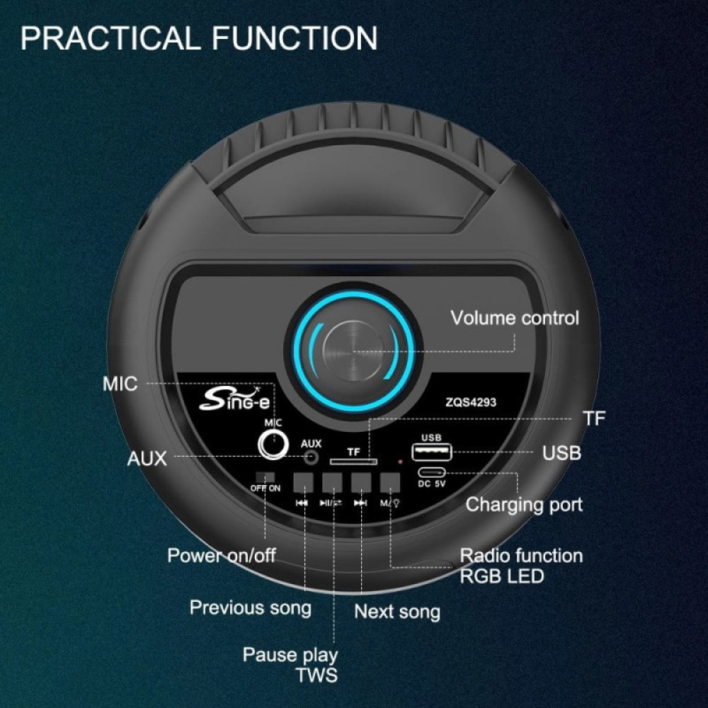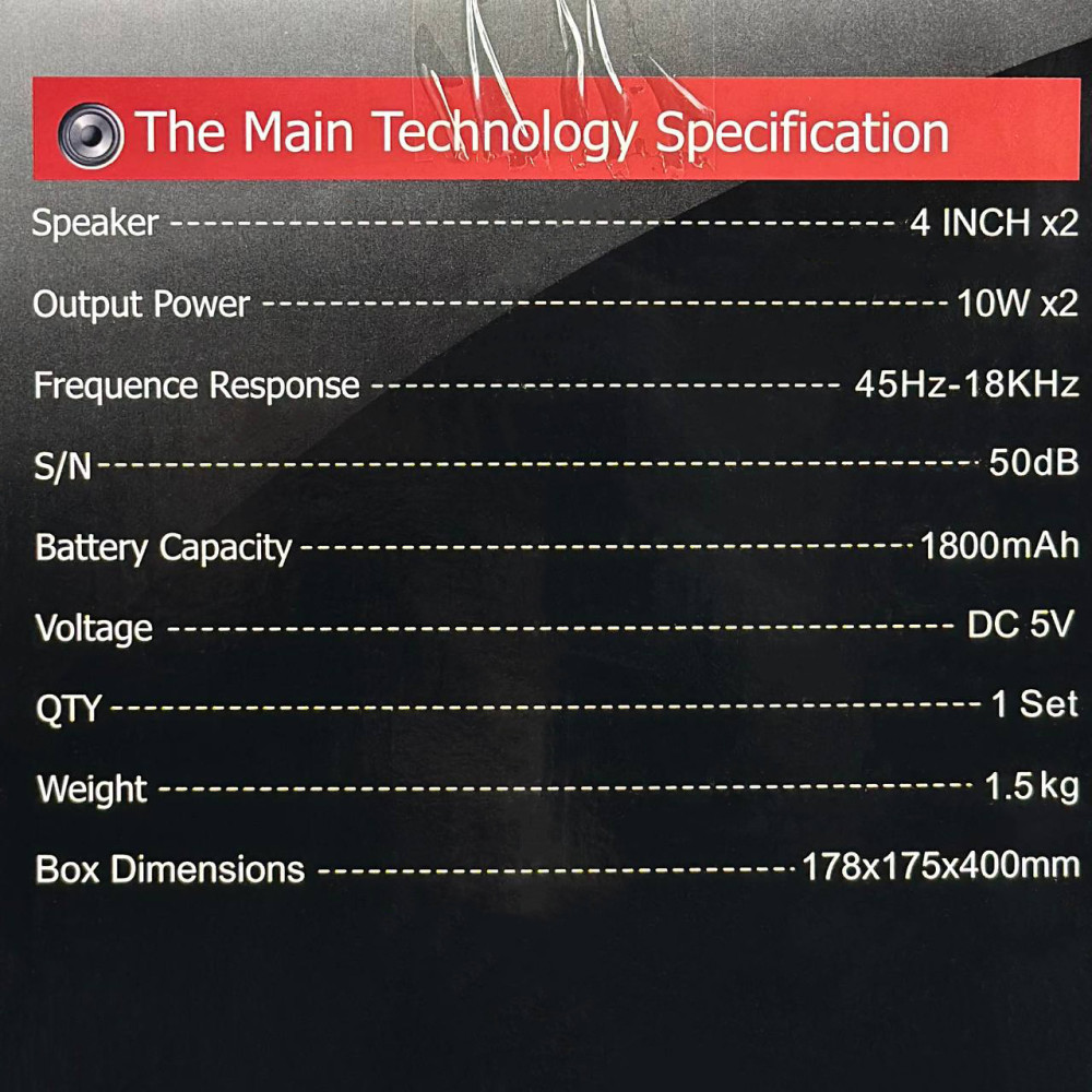 Колонка Sing-e ZQS4293 RGB 10W*2, 1800mAh з мікрофоном (40,0*17,5*17,0 см) (Гарантія на перевірку 3 міс.)
