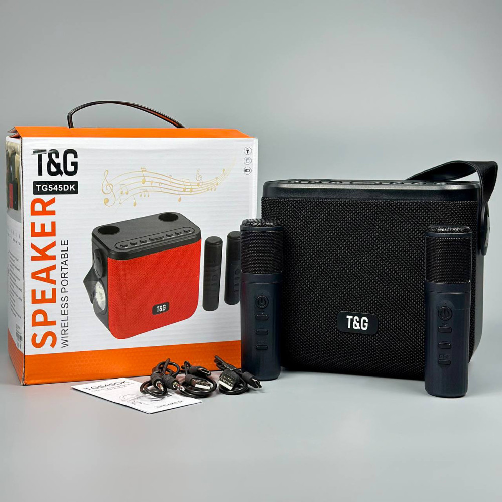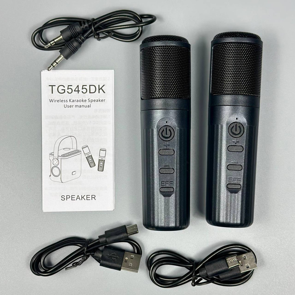 Портативна колонка TG545DK радіо, з функцією гучного зв'язку, 2 мікрофона, ліхтарик (16,0*18,2*11,5 см) (Гарантія на перевірку 6 міс.)