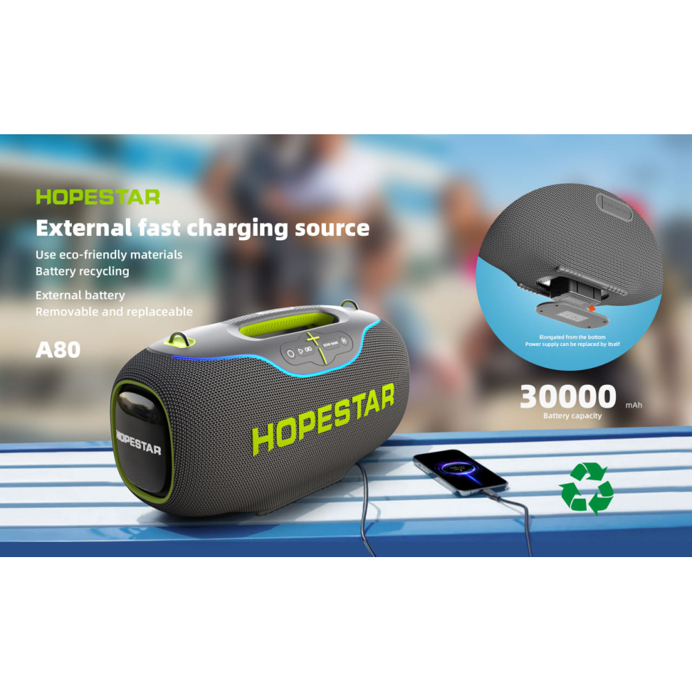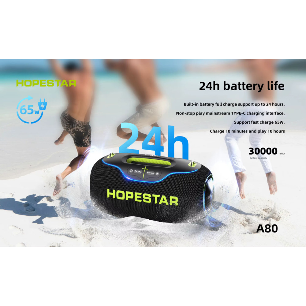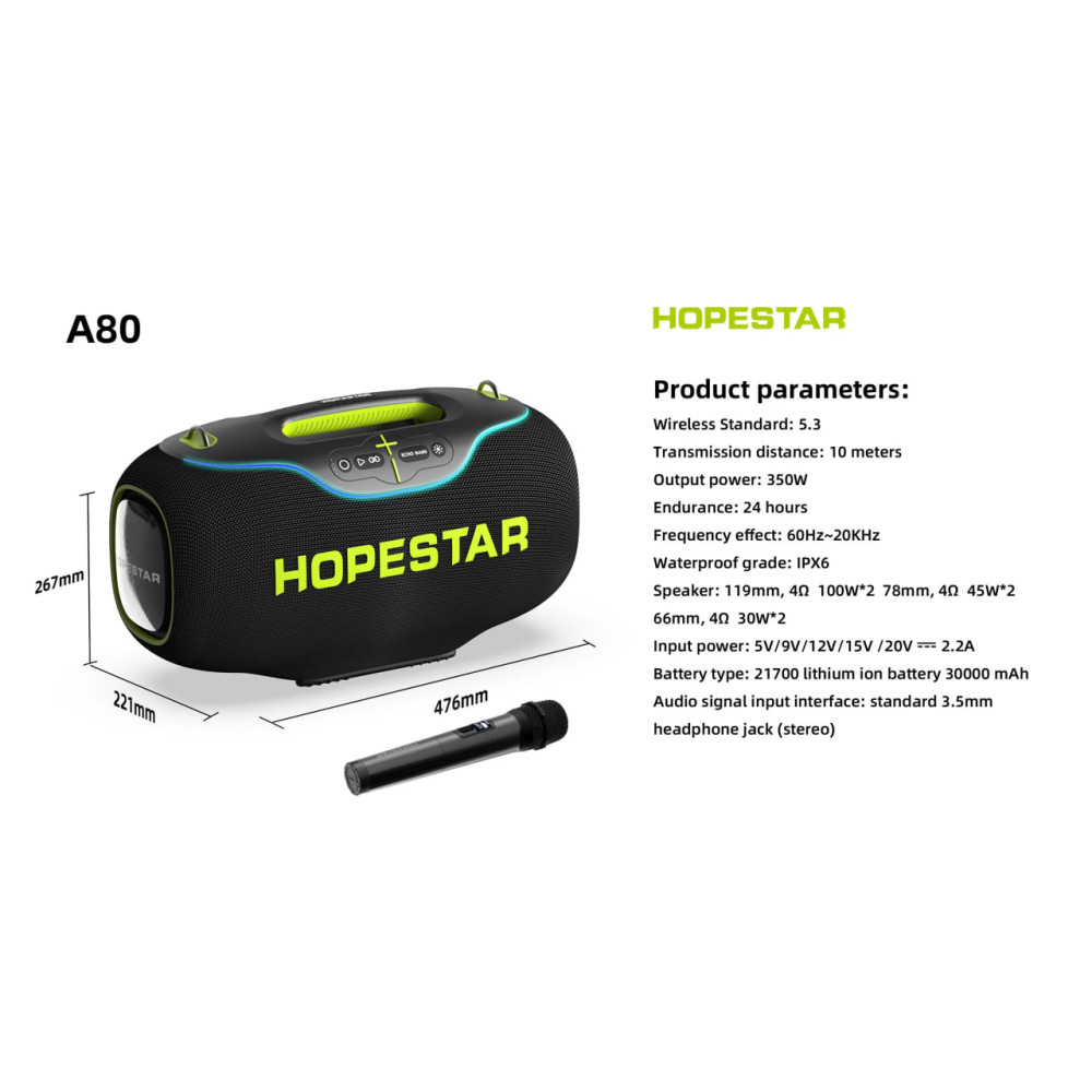 Колонка HOPESTAR A80 RGB 350W, 30000mAh (47,6*26,7*22,1 см) (Гарантія на перевірку 3 міс.)