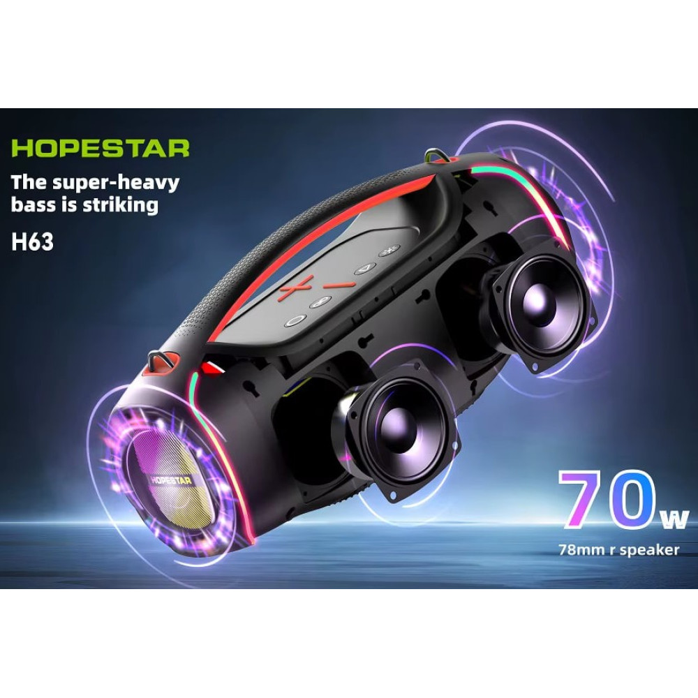 Колонка HOPESTAR H63 RGB 70W, 8800mAh (28,1*12,3*15,9 см) (Гарантія на перевірку 3 міс.)