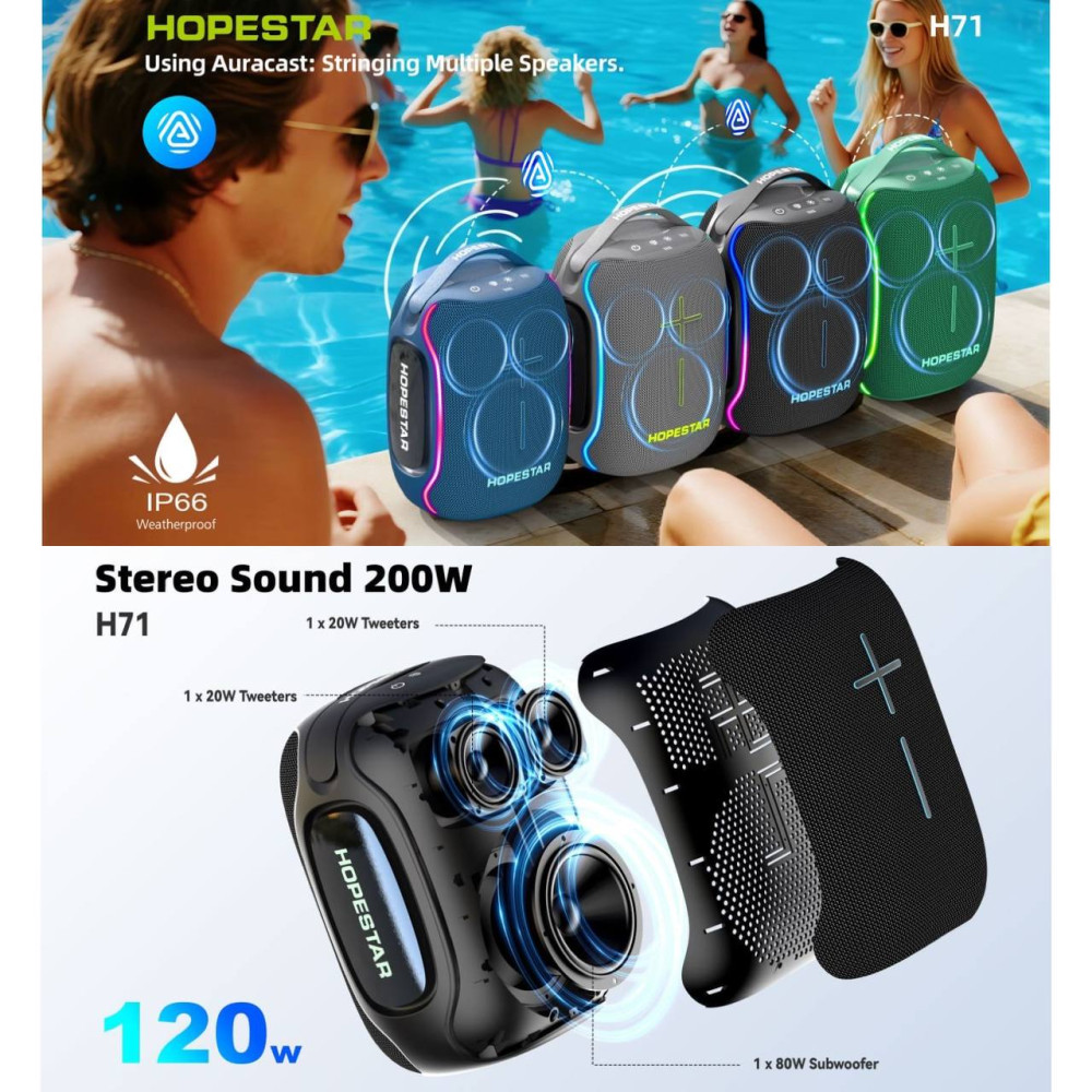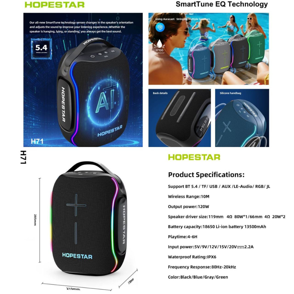 Колонка HOPESTAR H71 120W, 13500mAh (28,5*21,0*17,0 см) (Гарантія на перевірку 3 міс.)