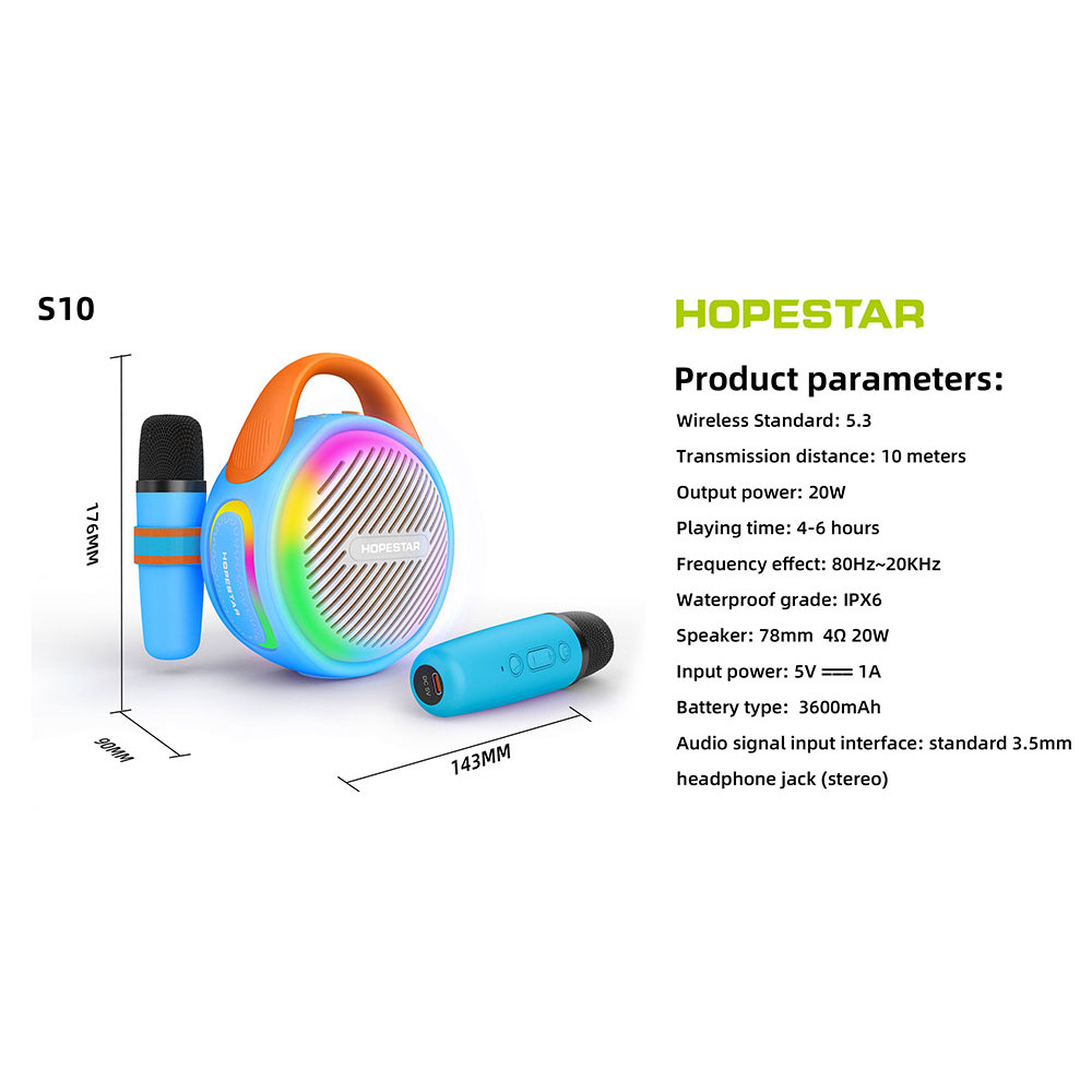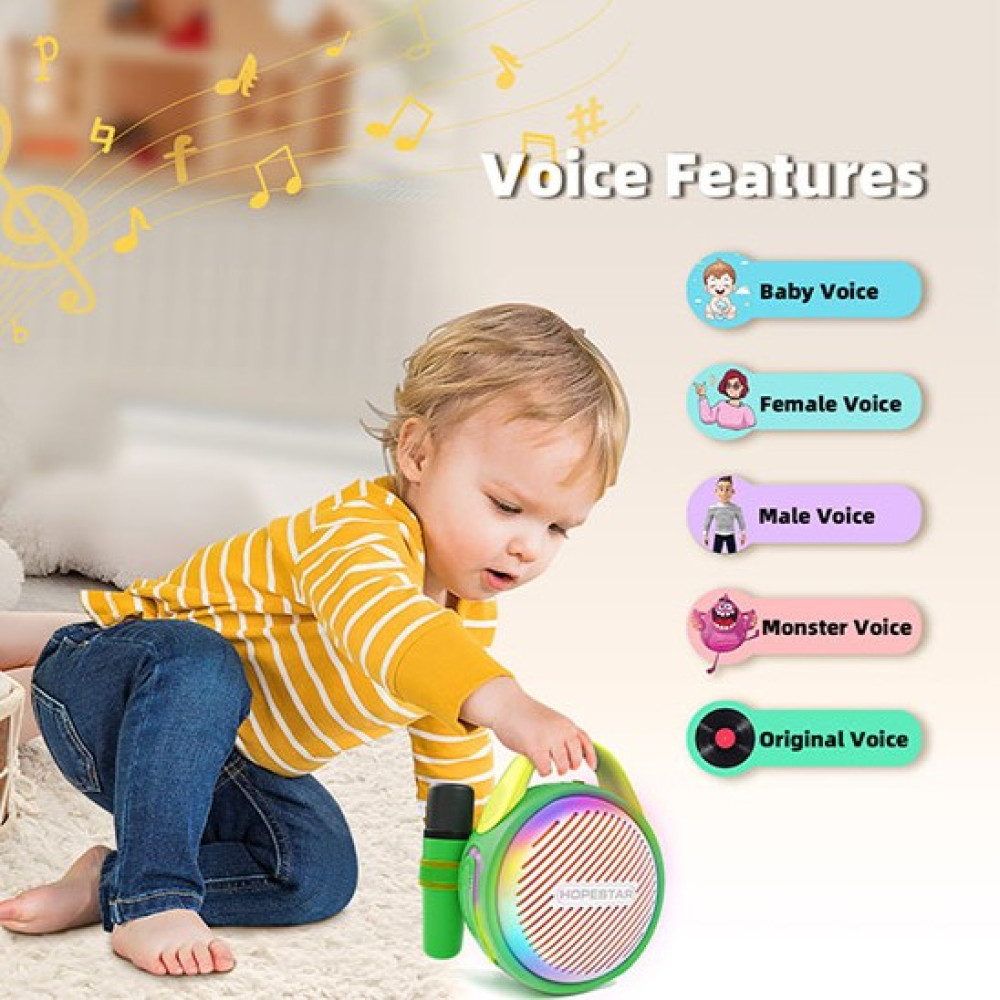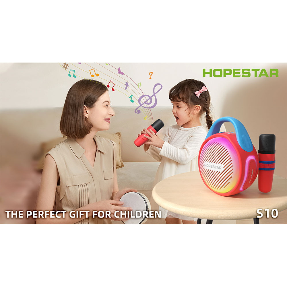HOPESTAR S10 - це не просто колонка, а справжній мобільний розважальний центр для дитини! Цей яскравий та компактний пристрій перетворить будь-яку дитячу кімнату на концертний майданчик чи караоке-клуб. У комплекті йдуть одразу два бездротових мікрофони, що дозволяє дітям співати дуетом або влаштовувати музичні конкурси з друзями.