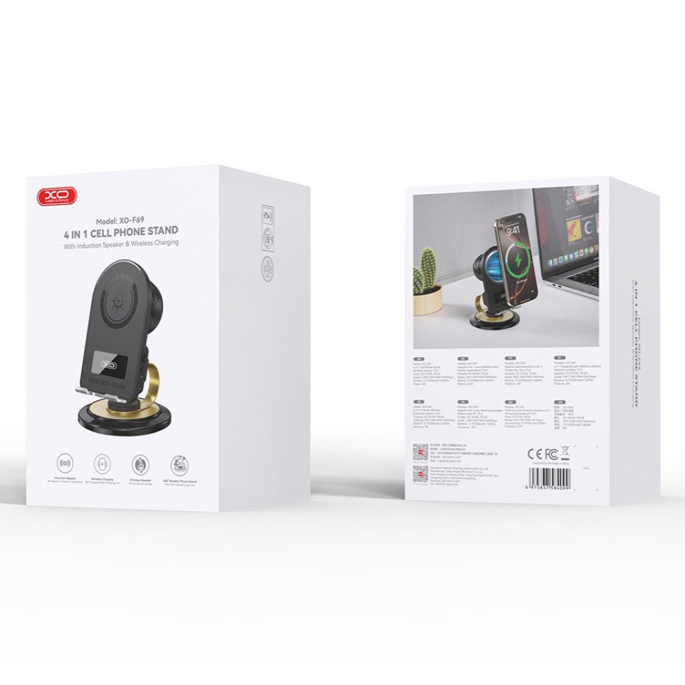 Портативна колонка-підставка для телефону XO F69 бездротова зарядка, індукційне підсилення, обертання на 360° (13,7*7,0*9,0 см) ( Гарантія на перевірку 6 міс.)