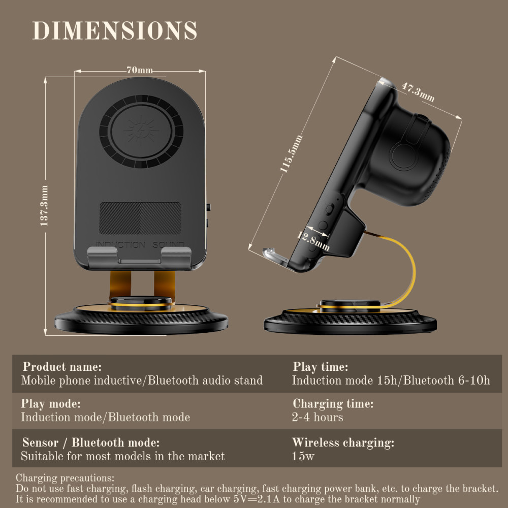 Функція: Бездротова зарядка/Індуктивне підсилення/Bluetooth/Підставка, обертання на 360°