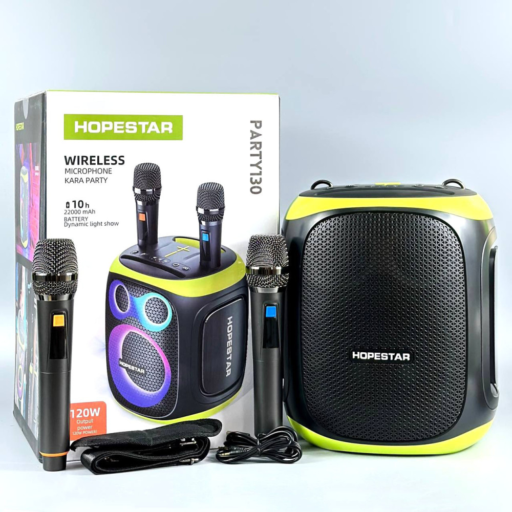 Колонка HOPESTAR Party 130 RGB з 2-ма мікрофонами 120W, 22000mAh (27,0*31,5*25,5 см) (Гарантія на перевірку 3 міс.)