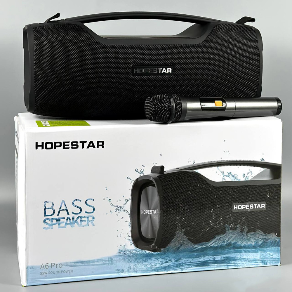 Колонка HOPESTAR A6 Pro з мікрофоном 55W, 6000mAh (40*15,4*18,5 см) (Гарантія на перевірку 3 міс.)
