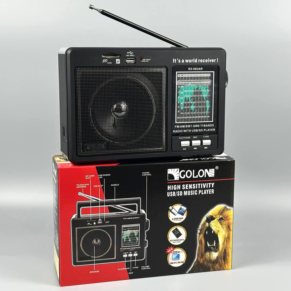 Портативне Радіо Golon RX-99UAR з акумулятором (25,0*17,0*8,5 см) (Гарантія на перевірку 1 міс.)