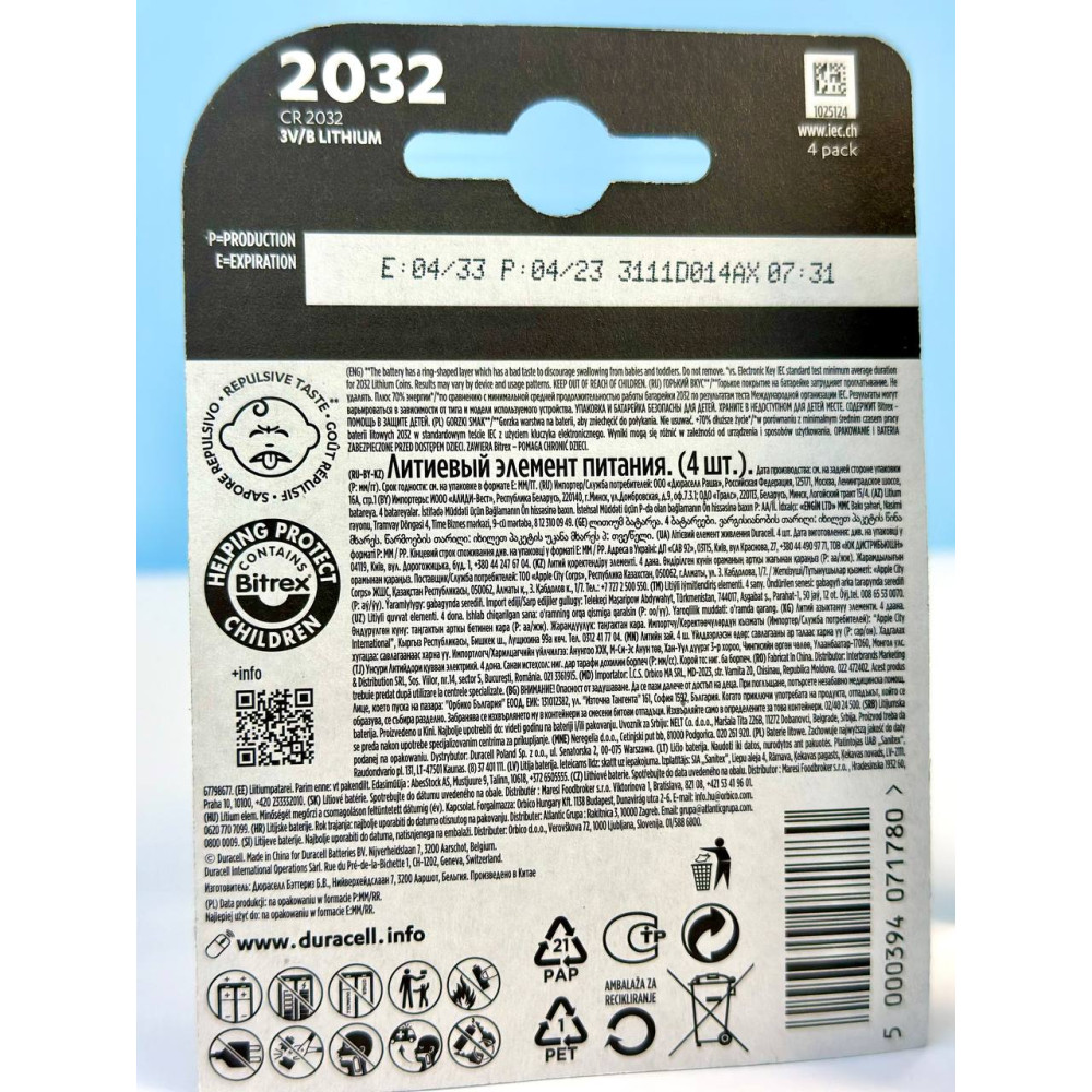 Батарейка DURACELL DL2032 DSN (4шт.)