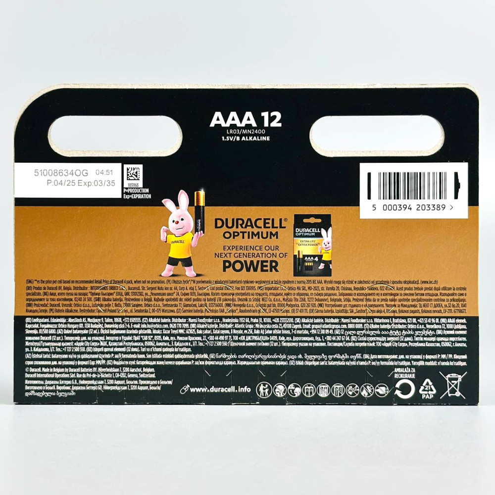 Батарейка лужна DURACELL LR03 AAA MN2400 Alkaline міні-пальчикова (12шт.)