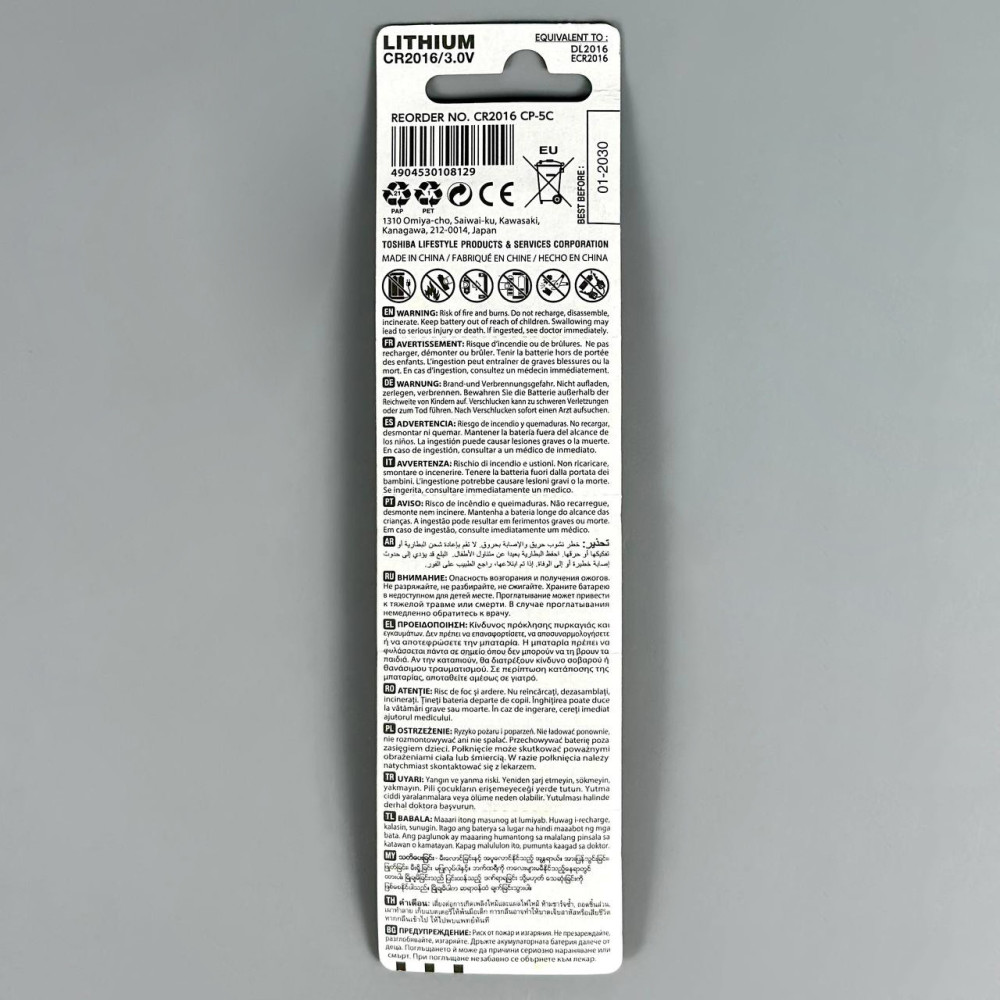 Батарейка літієва Toshiba CR2016 BP Lithium (5 шт.)