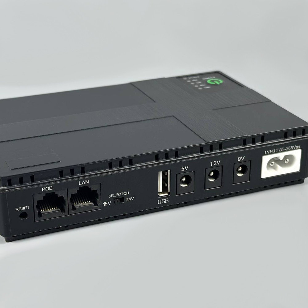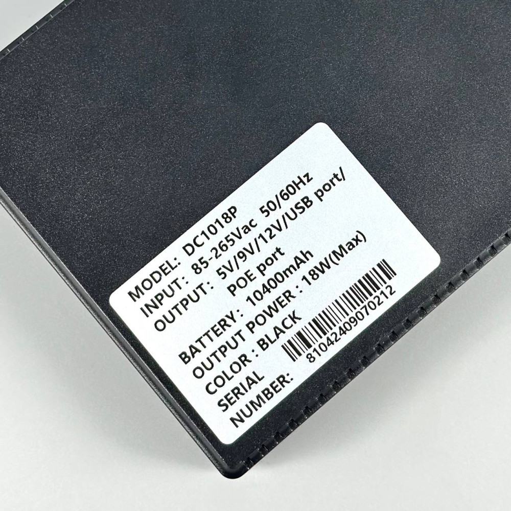 Універсальне джерело живлення із вбудованим літієвим акумулятором на 10400mAh. Прекрасне рішення при необхідності забезпечити живленням різних пристроїв. Шляхом набору виходів під різний вольтаж та з різними інтерфейсами, користувачу полегшується процес використання: більше не потрібно шукати спеціальні перехідники, специфічні блоки живлення, вигадувати підключення інверторів, трансформаторів тощо. Достатньо вибрати один із необхідних інтерфейсів: USB 5V/2A, DC 5V/2A, DC 9V/1A, DC 12V/1A, POE 15V/0.6A, POE 24V/0.6A – максимальна вихідна потужність – 36W. Це достатньо для підключення телефонів, планшетів, зарядки радіостанцій, живлення камер відеоспостереження, пристроїв з Passive PoE (15 або 24V).