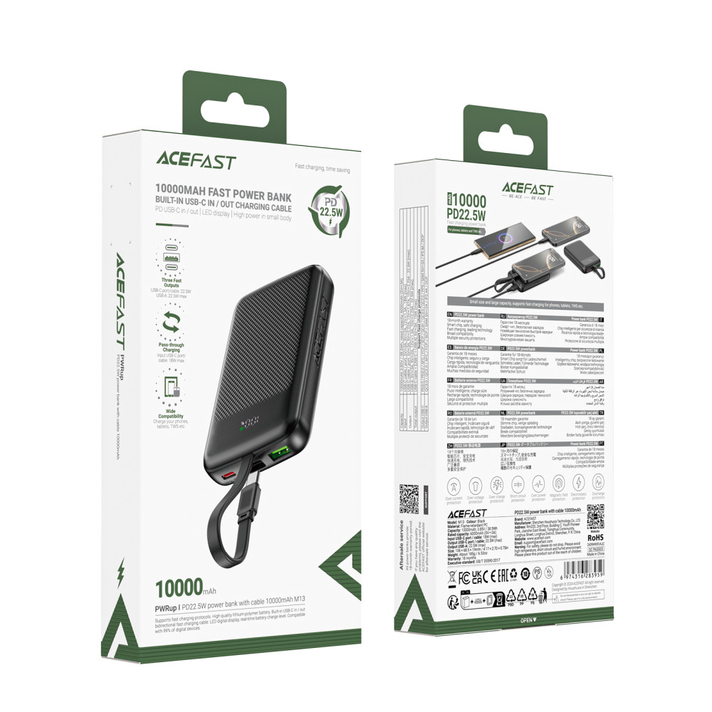 УМБ Power Bank AceFast M13 10000mAh Sparkling series PD22.5W (with cable Type-C) (Гарантія на перевірку 6 міс.)