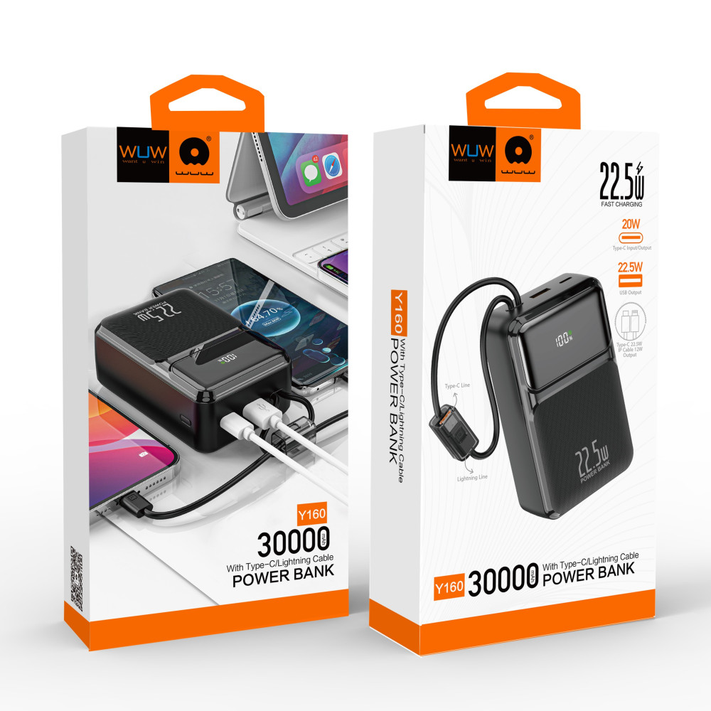 УМБ Power Bank WUW Y160 30000mAh PD20W+22.5W (with cable Type-C+Lightning) (Гарантія на перевірку 6 міс.)