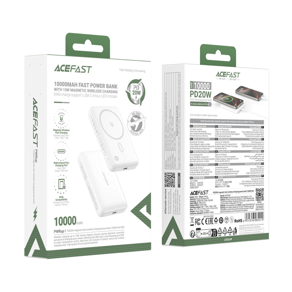УМБ Power Bank AceFast M26 10000mAh PD20W з бездротовою зарядкою (Гарантія на перевірку 6 міс.)