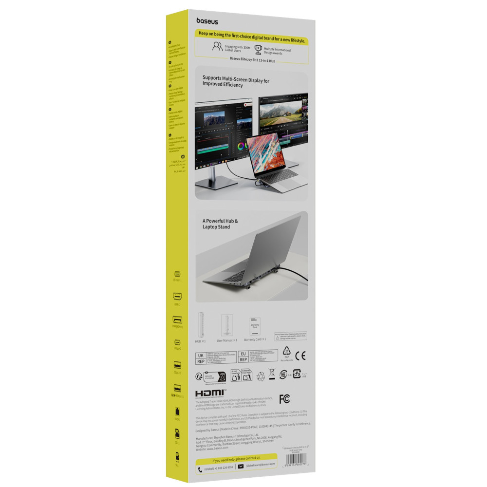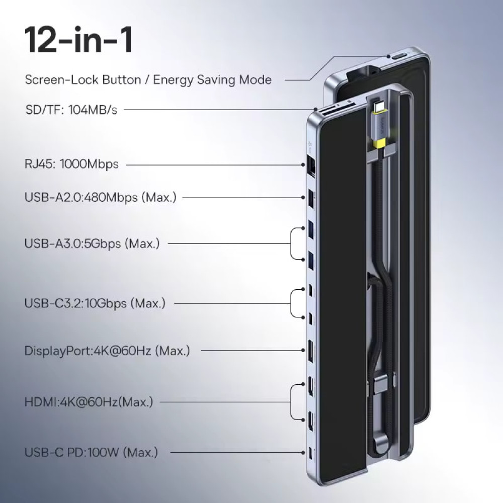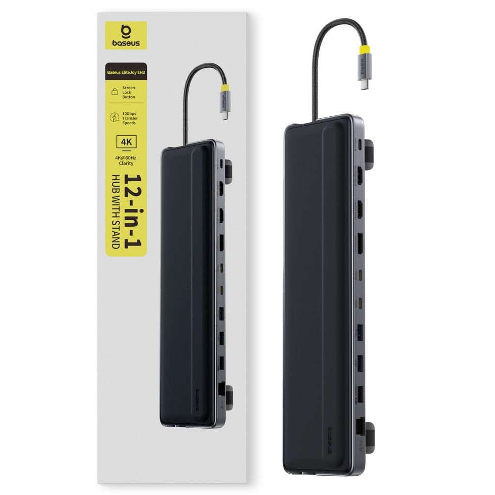 USB-C HUB Baseus EliteJoy EH3 12in1 (Type-C to 2*HDMI+DP+3*Type-C+3*USB+SD-TF+RJ45) з підставкою (B0114200)