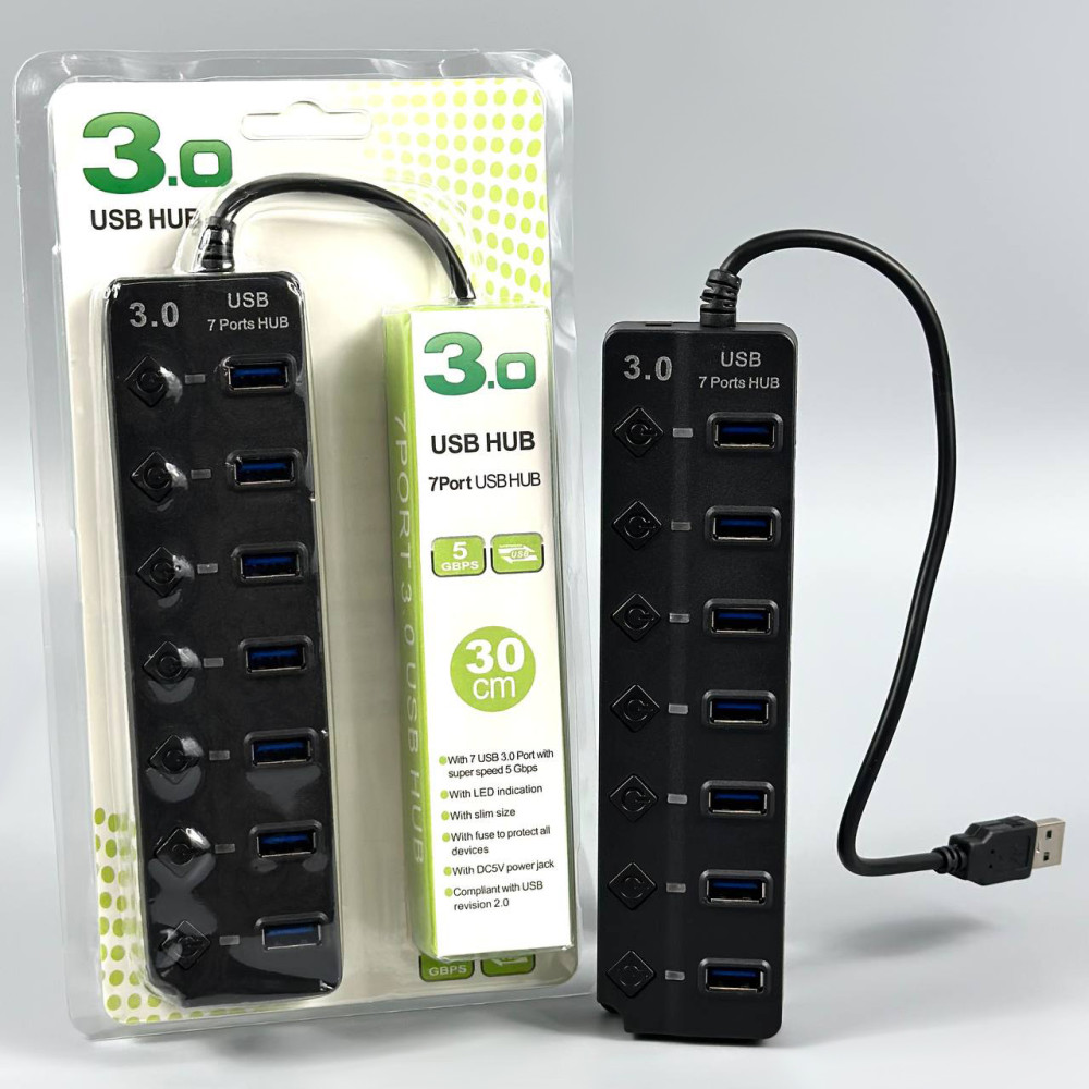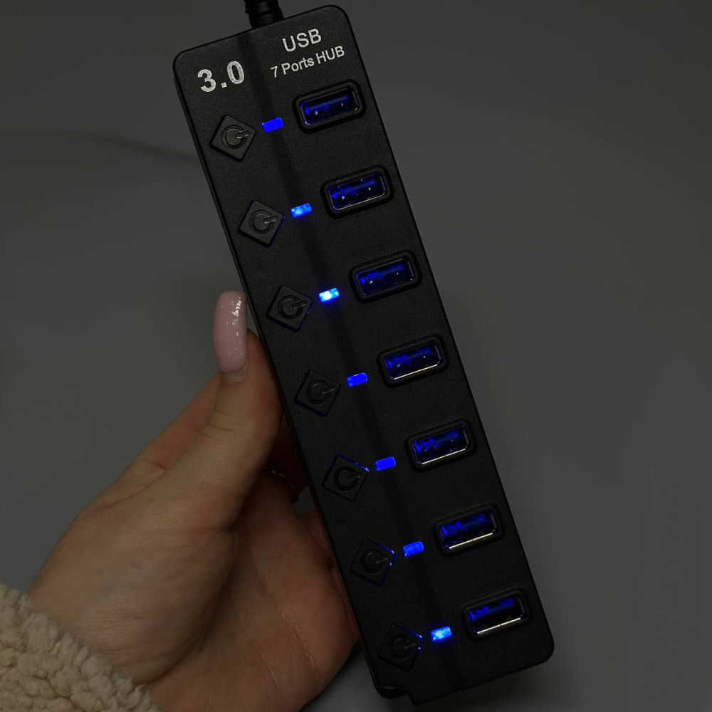 USB HUB Super Speed 7 Ports, LED-індикація для кожного порту (USB to USB3.0*7) 30см