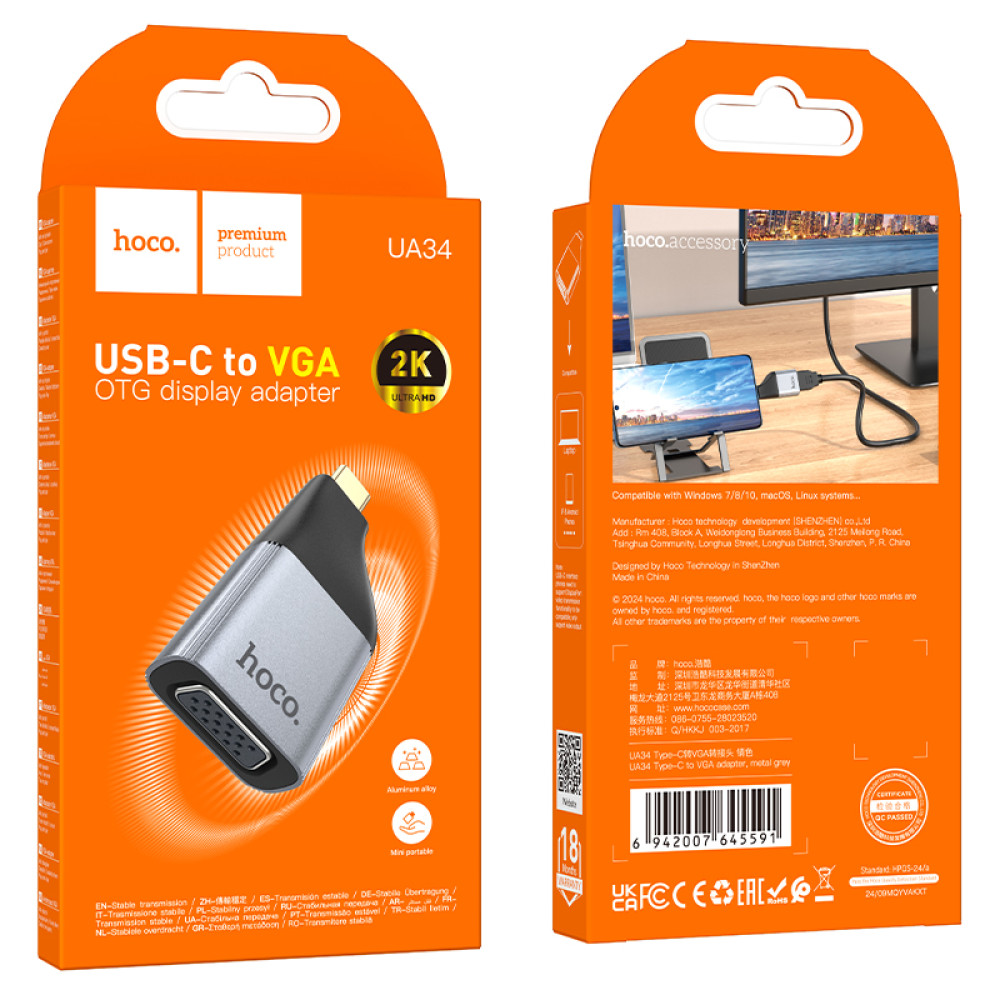 Перехідник OTG Hoco UA34 Type-C male to VGA female