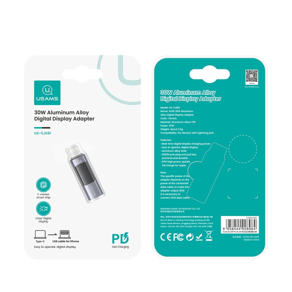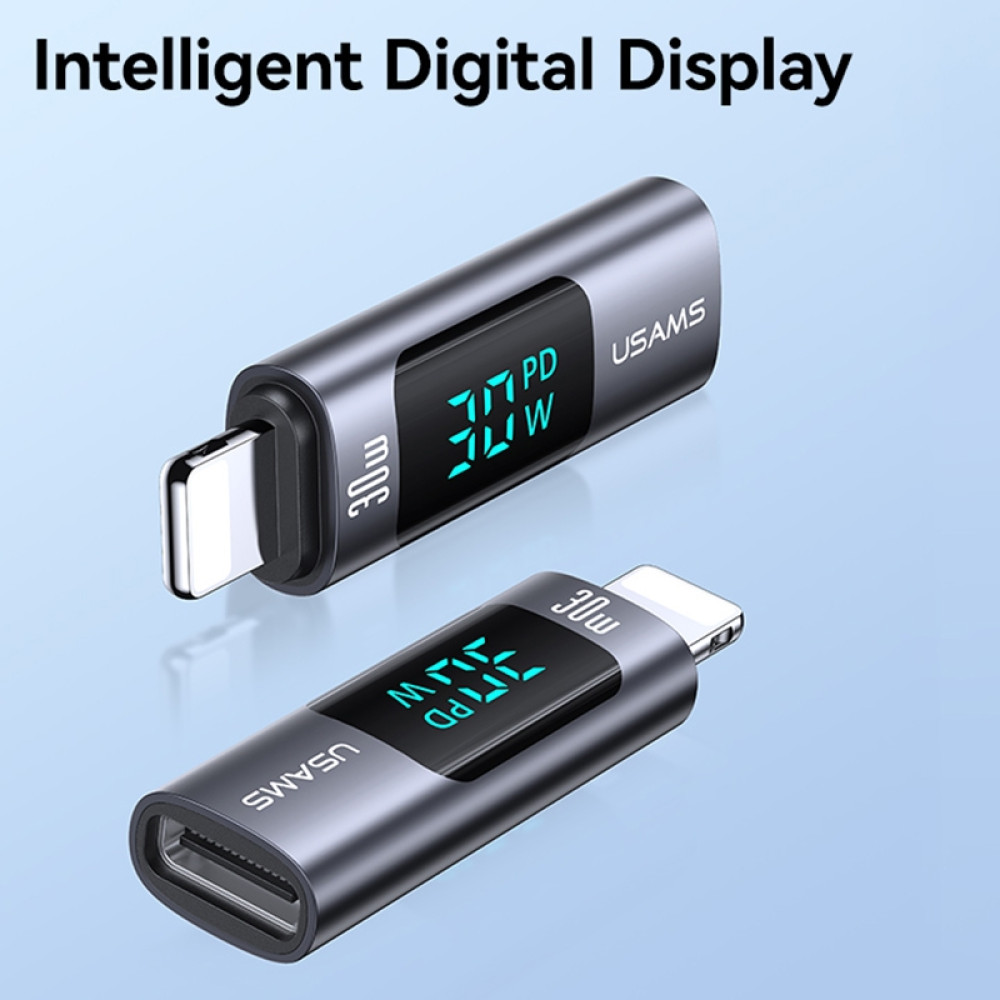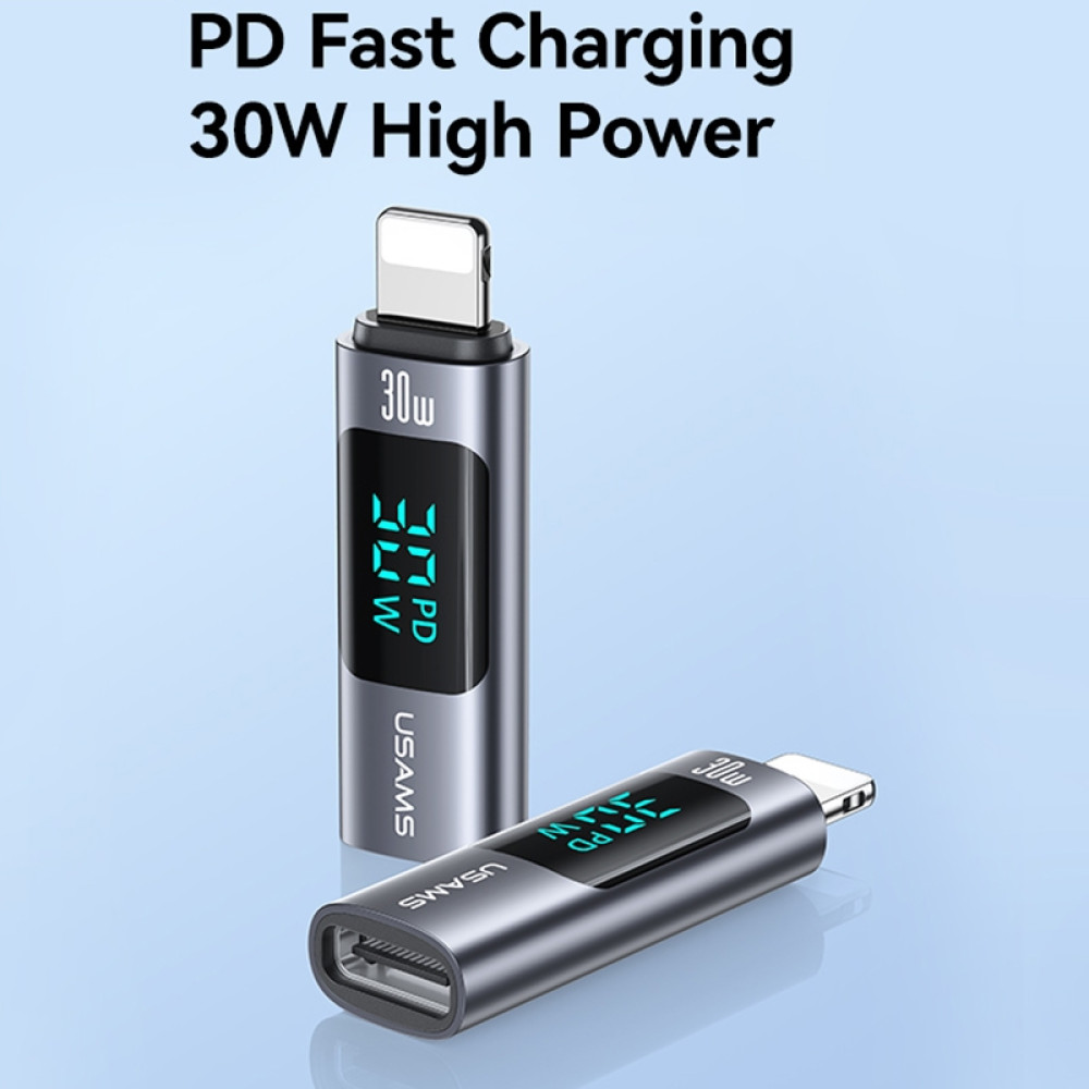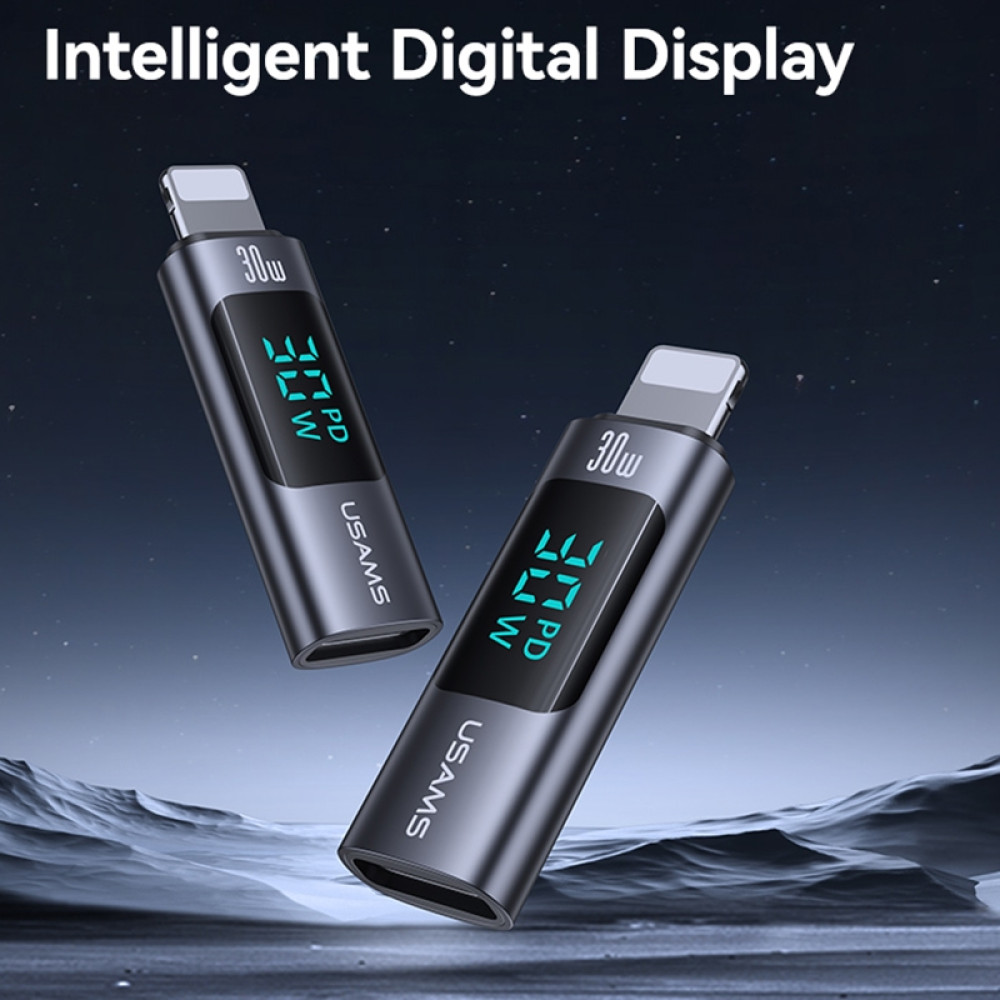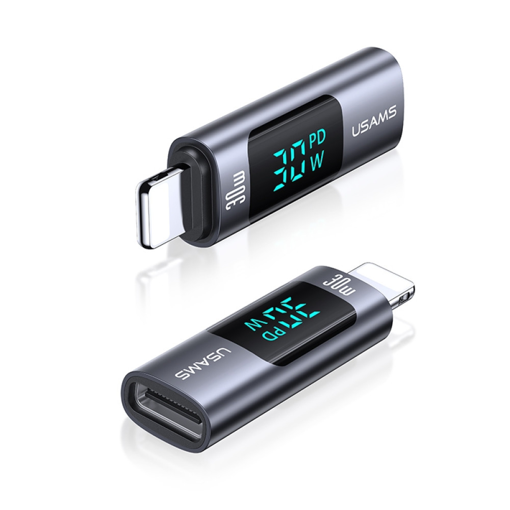 Перехідники OTG Usams US-SJ681 AU18 Lightning male to Type-C female PD30W з дисплеєм