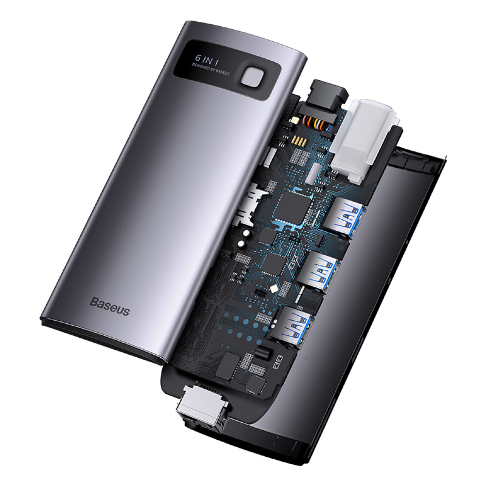 USB-C HUB Baseus Metal Gleam Series 6-Port (Type-C to HDMI+USB3.0*3+Type-C+RJ45) (WKWG080013)