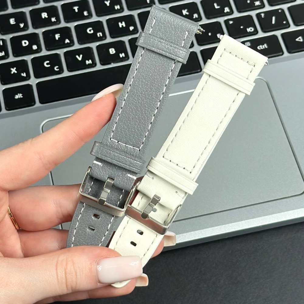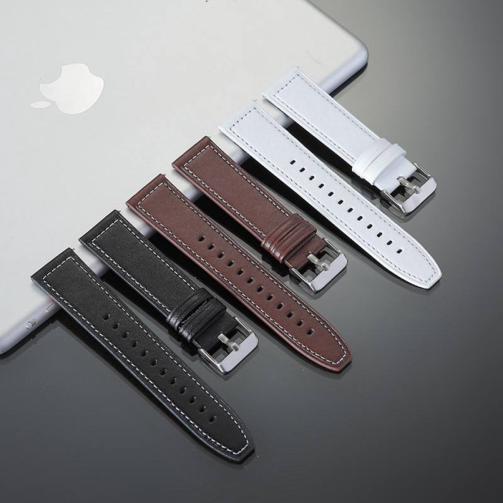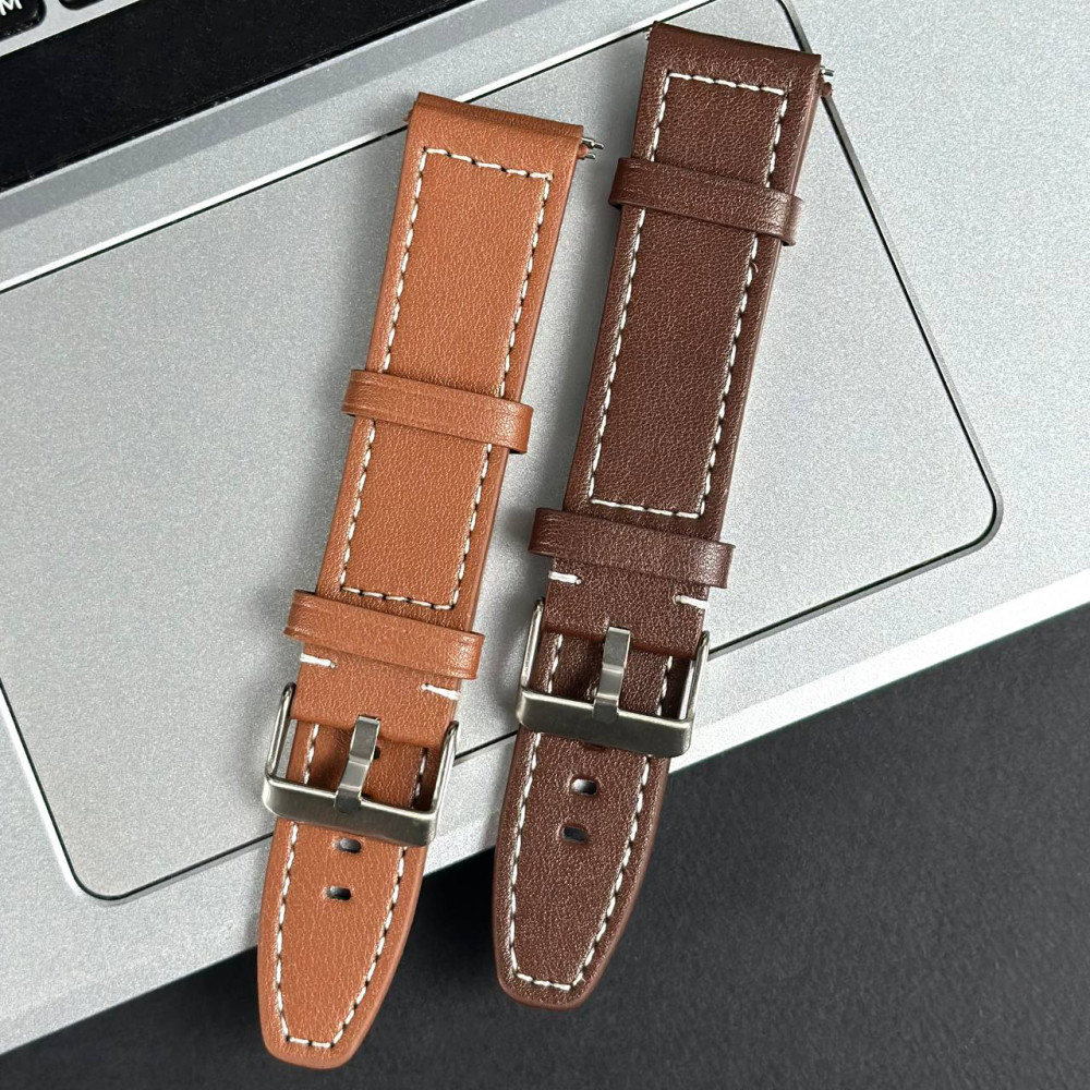 Ремінець для годинника універсальний Leather Smooth white stitching 20mm