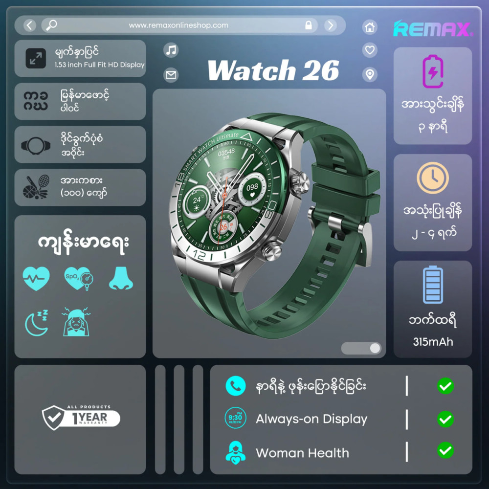 Smart Watch Remax Watch26 Green Ghost Alloy (Гарантія на перевірку 6 міс.)