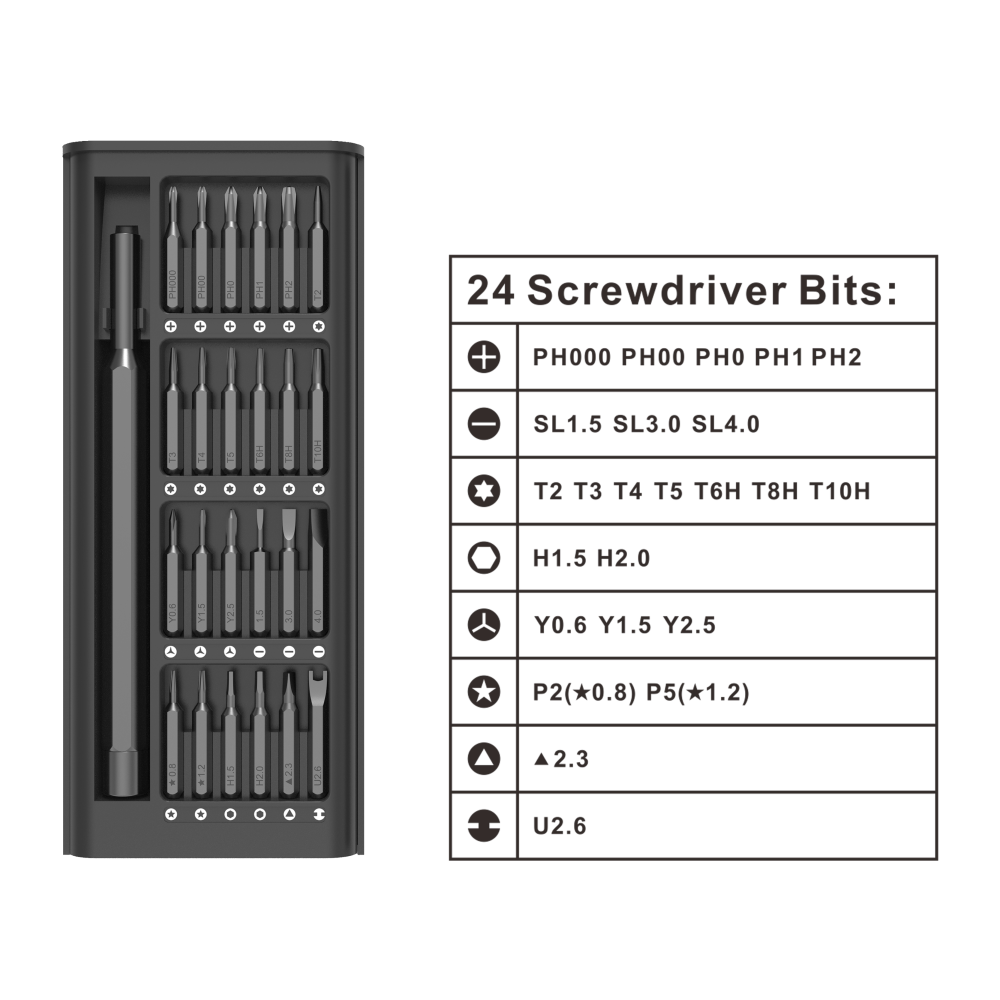 Викрутка з набором прецизійних магнітних біт 24in1