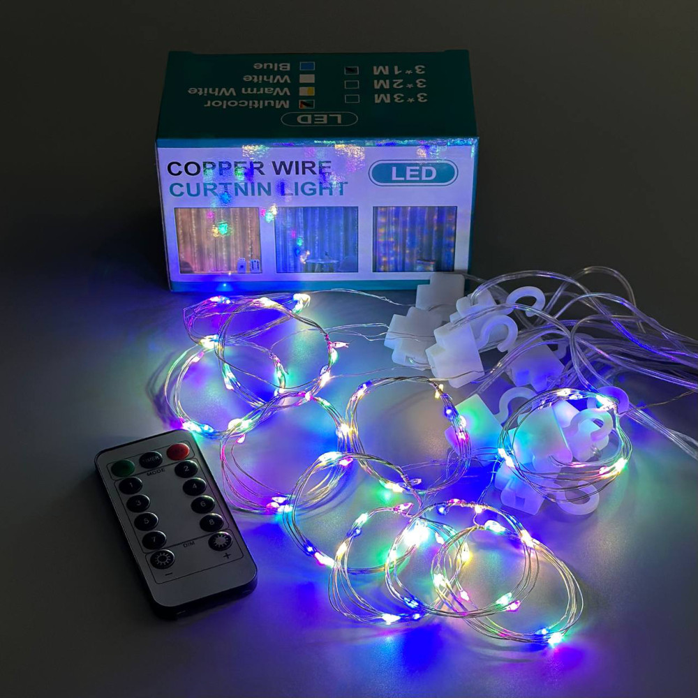 Гірлянда Водоспад 3m*1m (10pcs) на мідному дроті Мультикольорова від USB з пультом (Гарантія на перевірку 14 днів)
