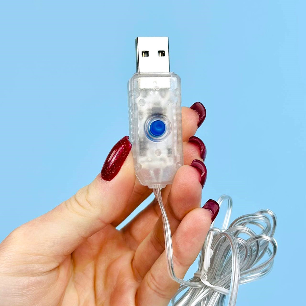 Гірлянда Водоспад 3m*1m (10pcs) на мідному дроті Теплий від USB з пультом (Гарантія на перевірку 14 днів)