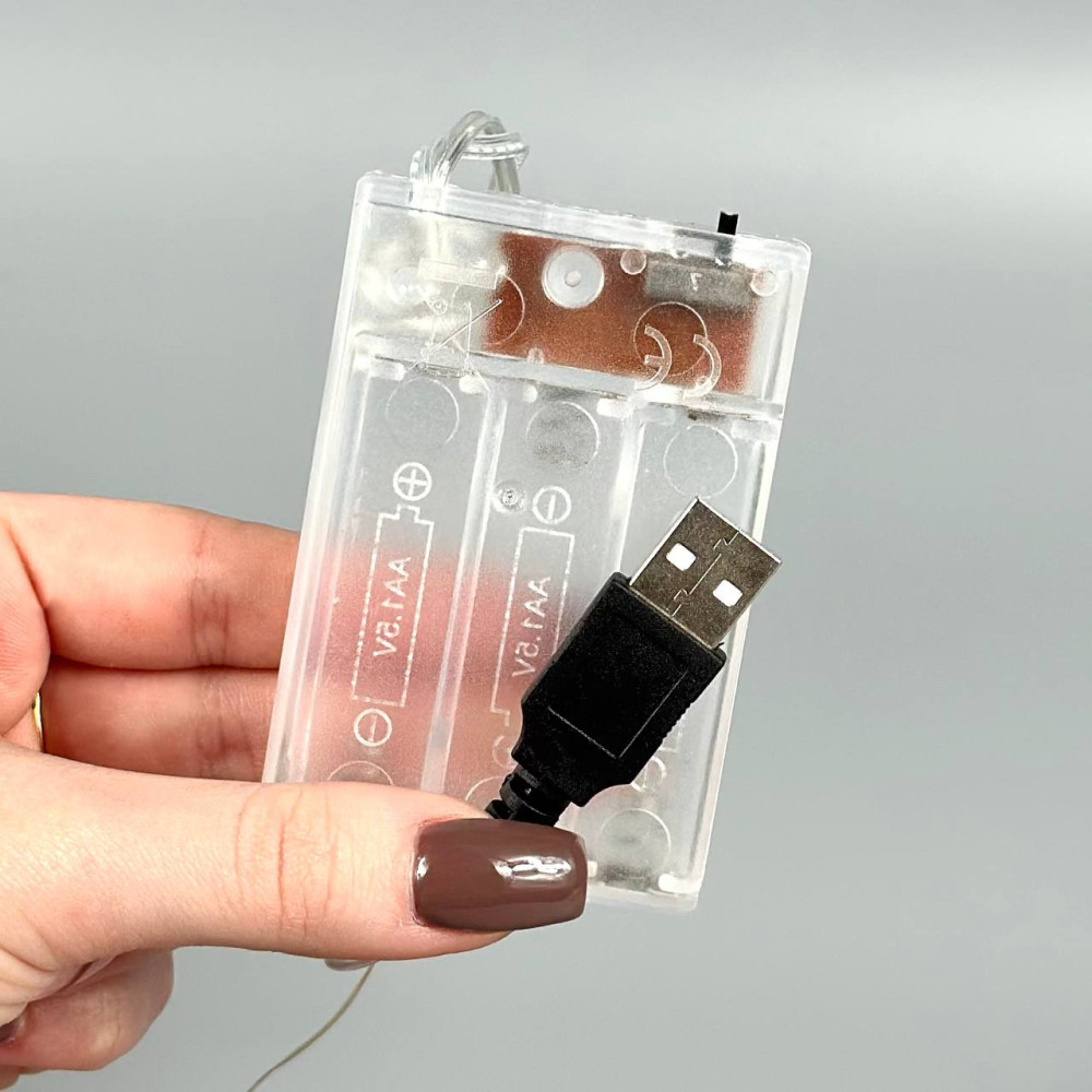 Гірлянда Крапля роси 200 Led 20m Білий на мідному дроті від батарейок+USB (Гарантія на перевірку 14 днів)