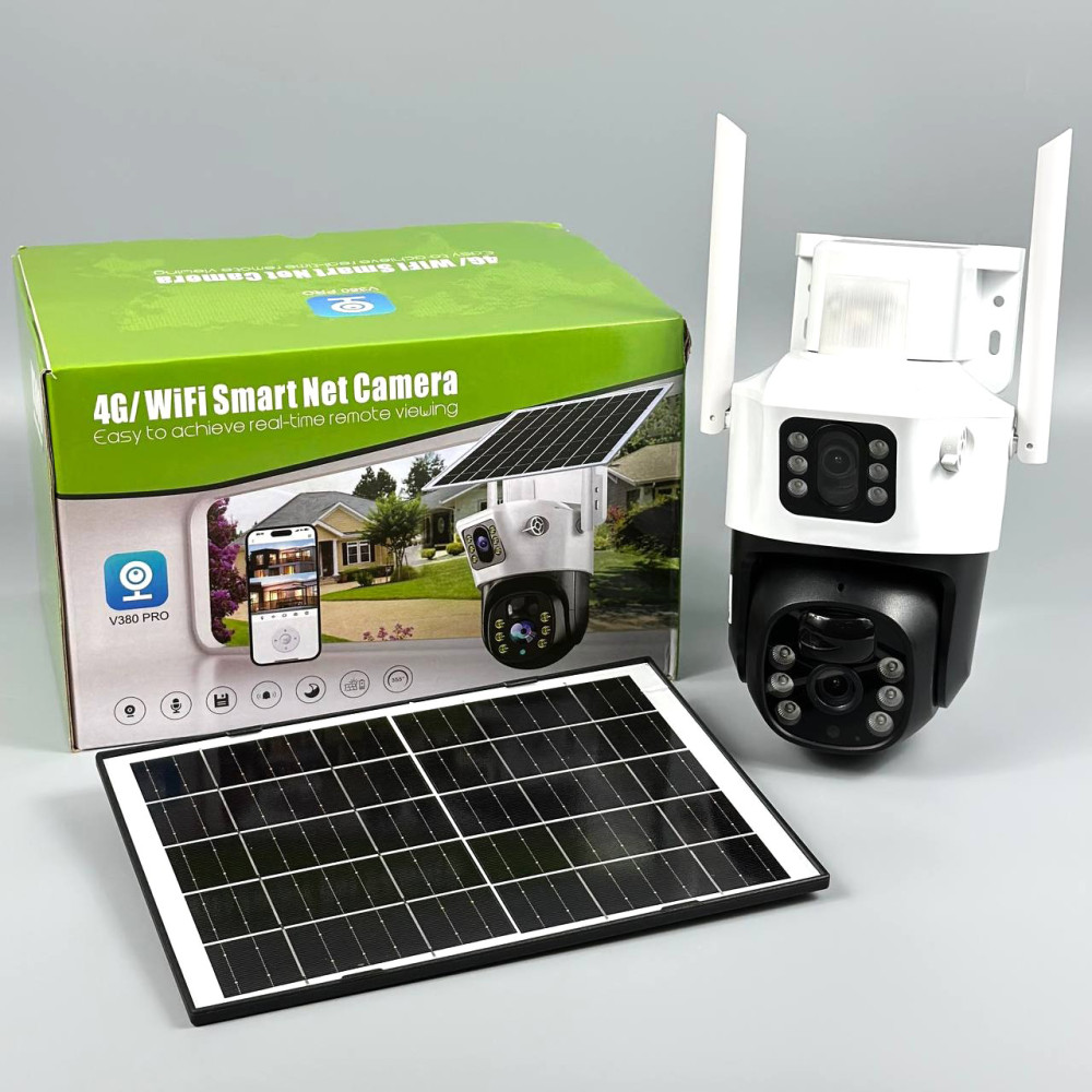 Камера відеоспостереження V380 Pro T22-4G Sim з 2-ма Lens та сонячною батареєю (WiFi, 2K, 4MР) (Гарантія на перевірку 3 міс.)