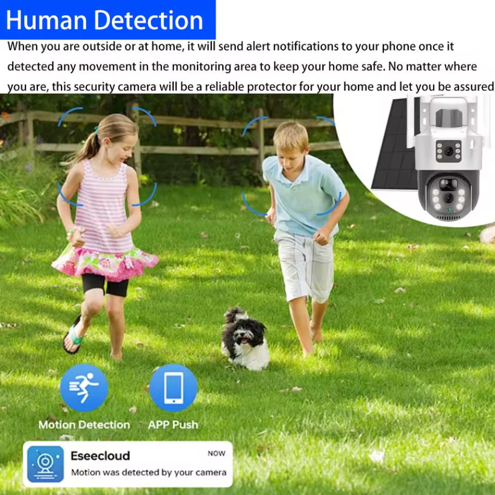 - Виявлення: Інтелектуальне AI-виявлення людини (PIR Motion Detection) з push-повідомленнями в додаток