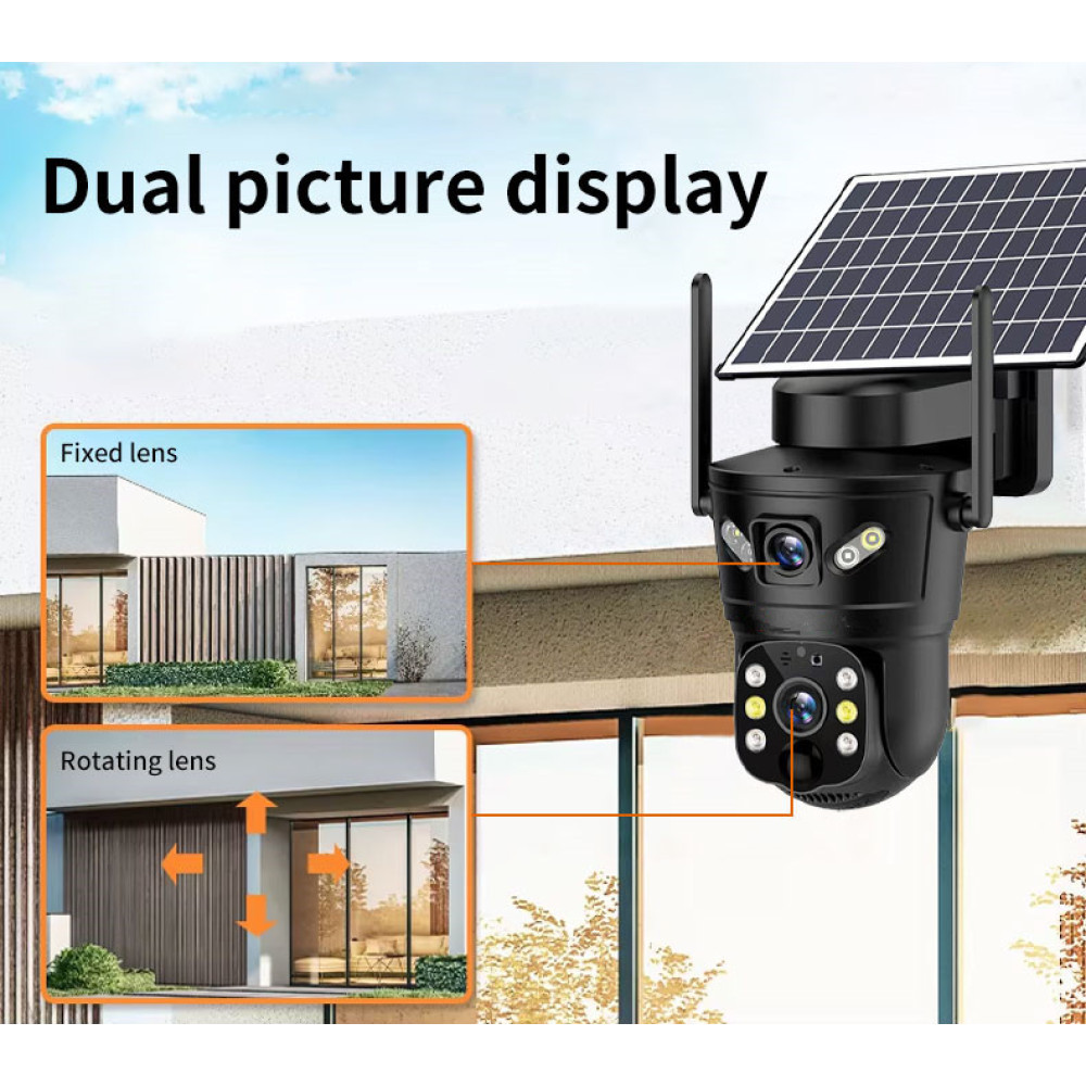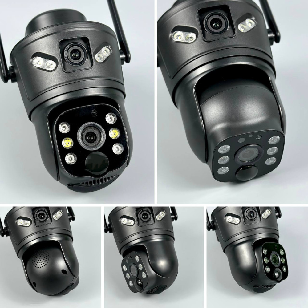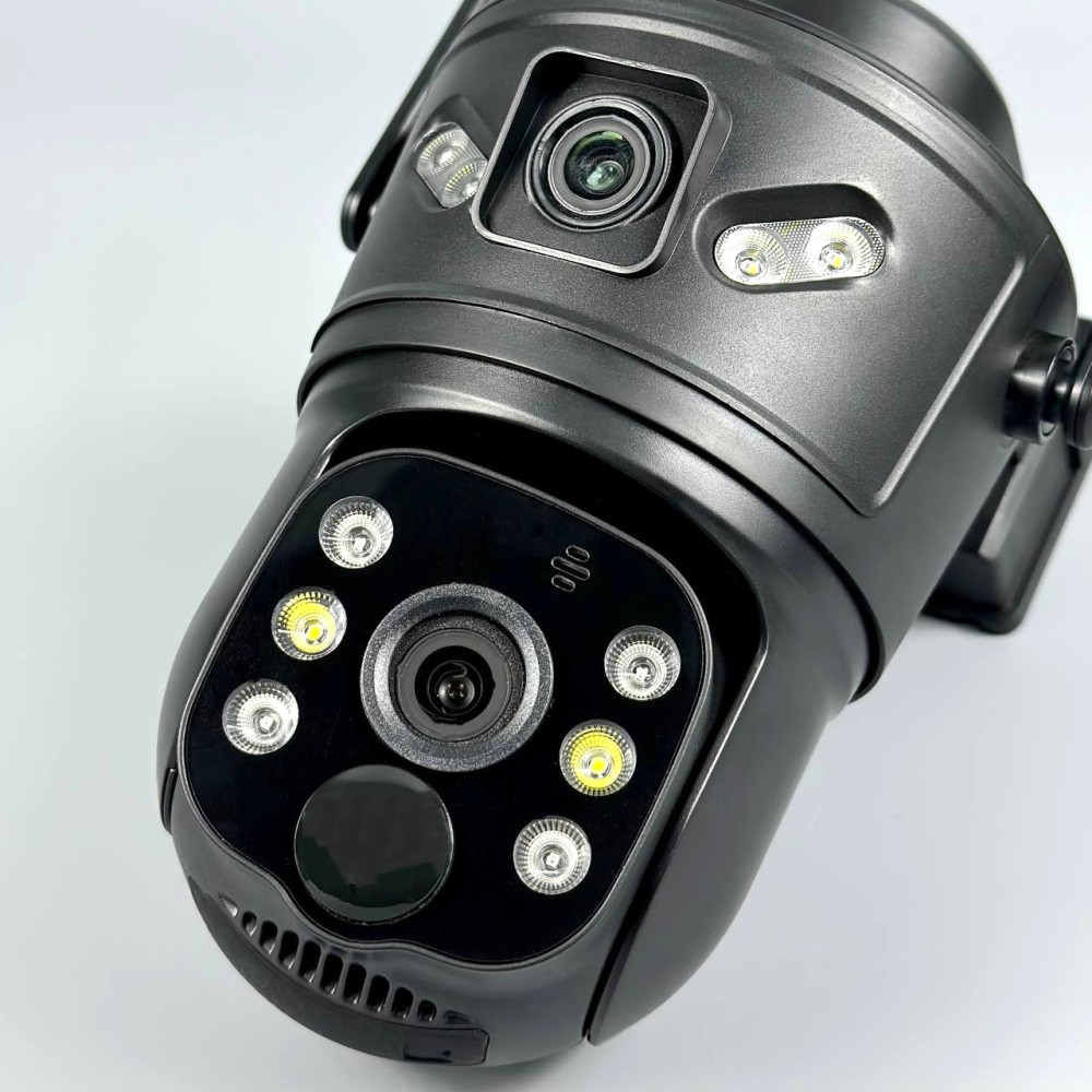 Камера V380 Pro T9-4G - це універсальне рішення для зовнішнього спостереження. Вона оснащена двома незалежними об'єктивами: один для фіксованого огляду, а другий - поворотний (PTZ), що забезпечує охоплення на 360° по горизонталі та 90° по вертикалі.