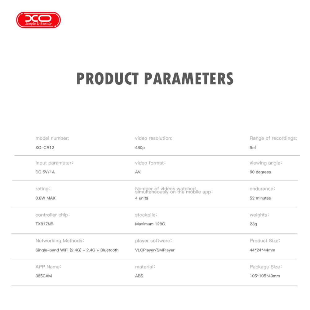 Камера відеоспостереження XO CR12 mini (WiFi, 0.3 Megapixel 480P, з підставкою) (Гарантія на перевірку 6 міс)