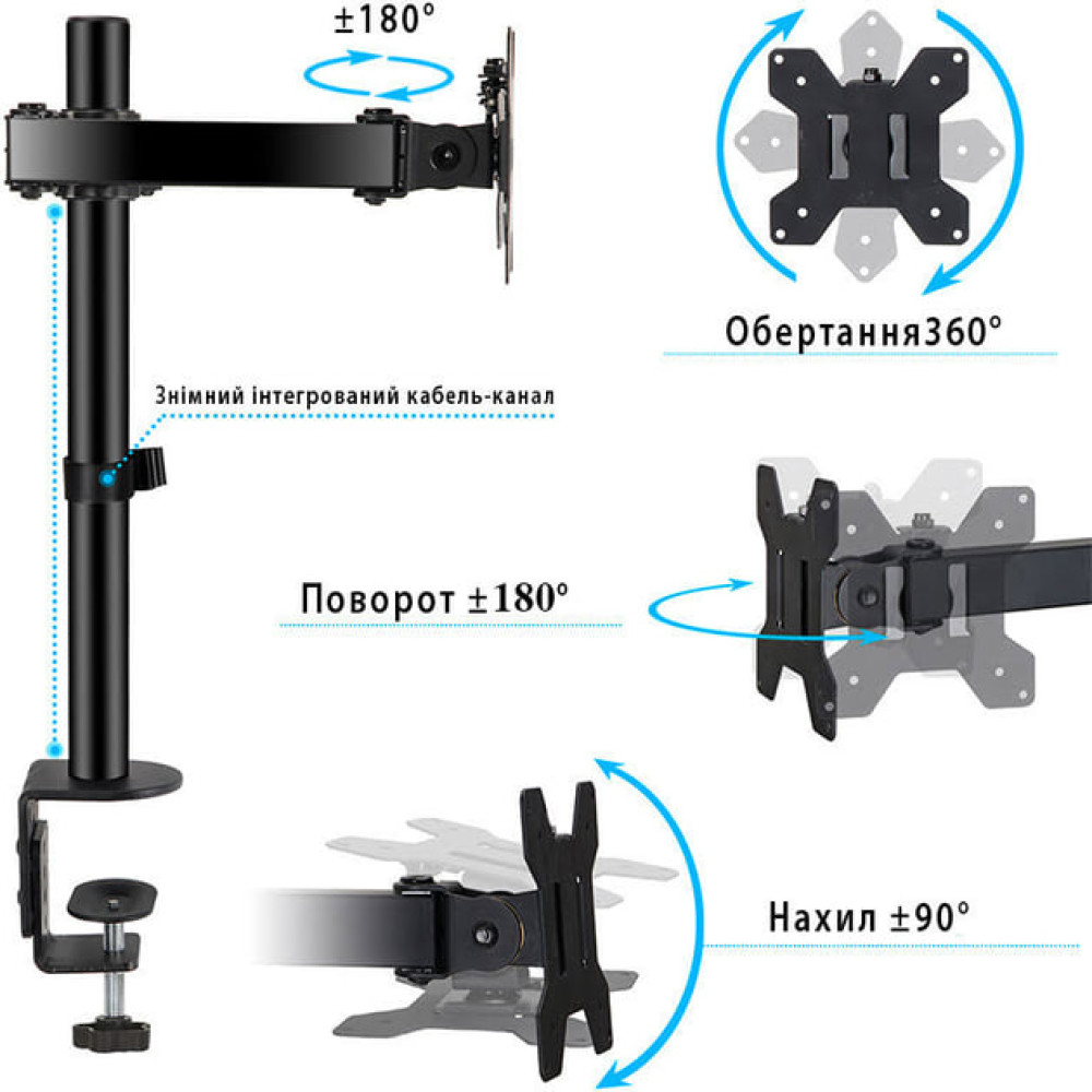 Кронштейн настільний M074-K для монітора до 32inch та ноутбука до 17inch (2 кріплення)